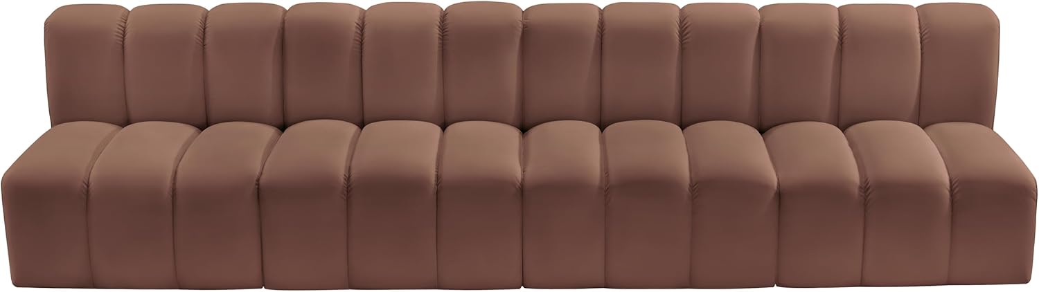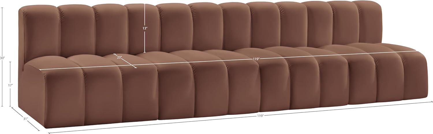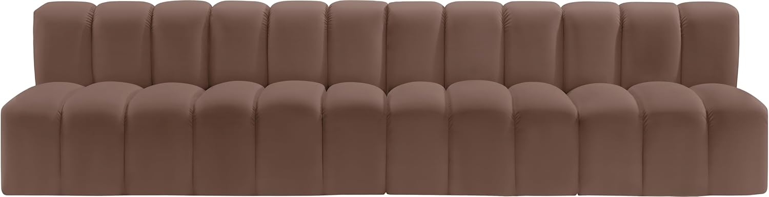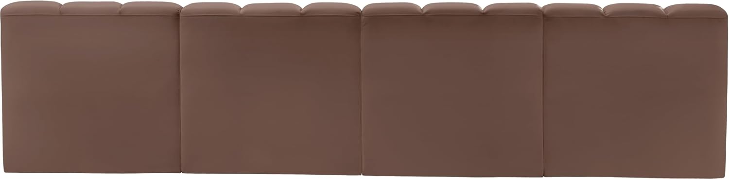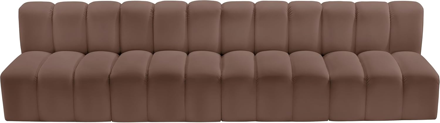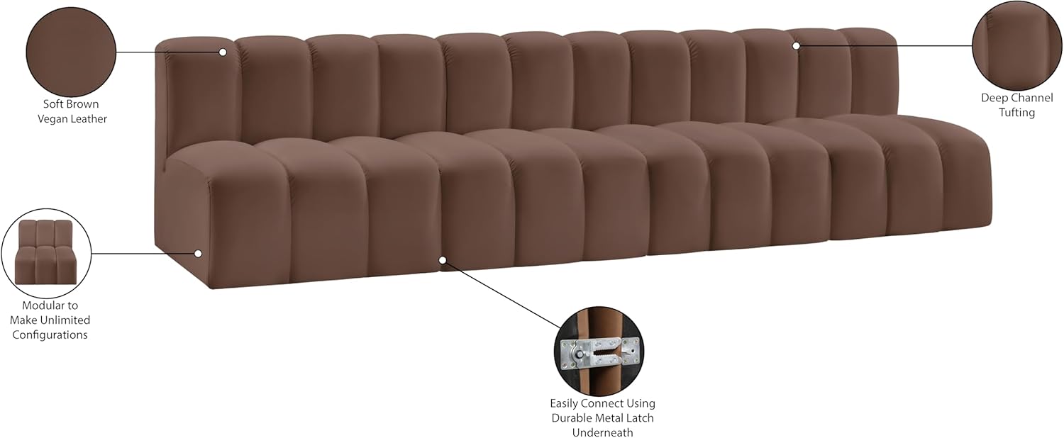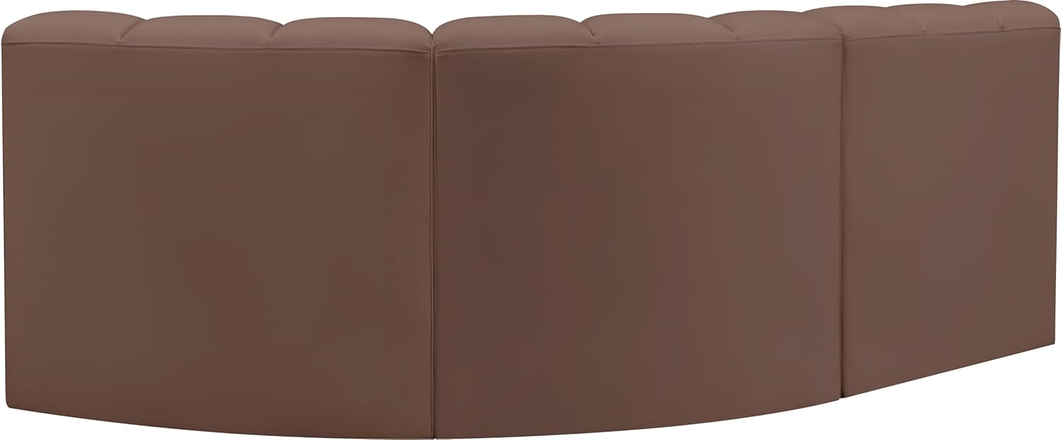 Meridian Furniture Arc Collection Modern | Contemporary Sofa with Soft Vegan Leather, Deep Channel Tufting, Modular, 119" W x 31" D x 30" H, Brown