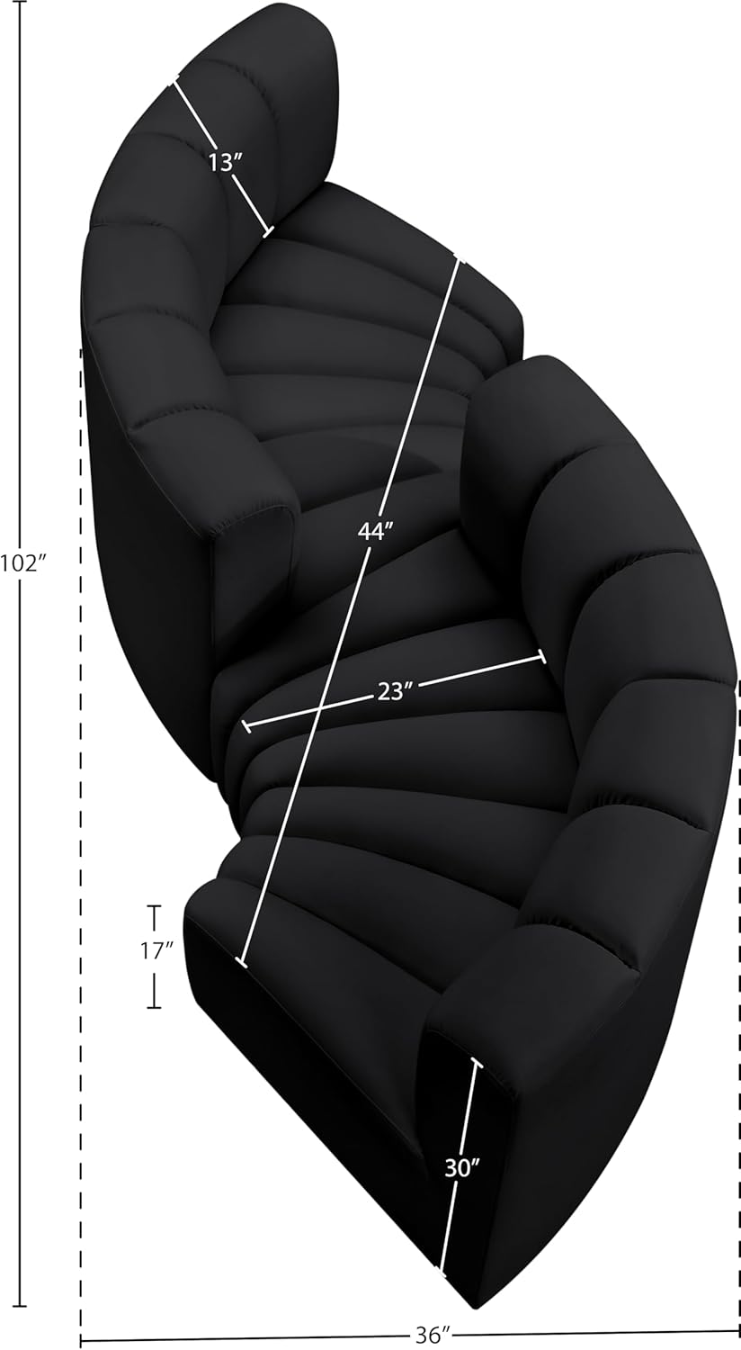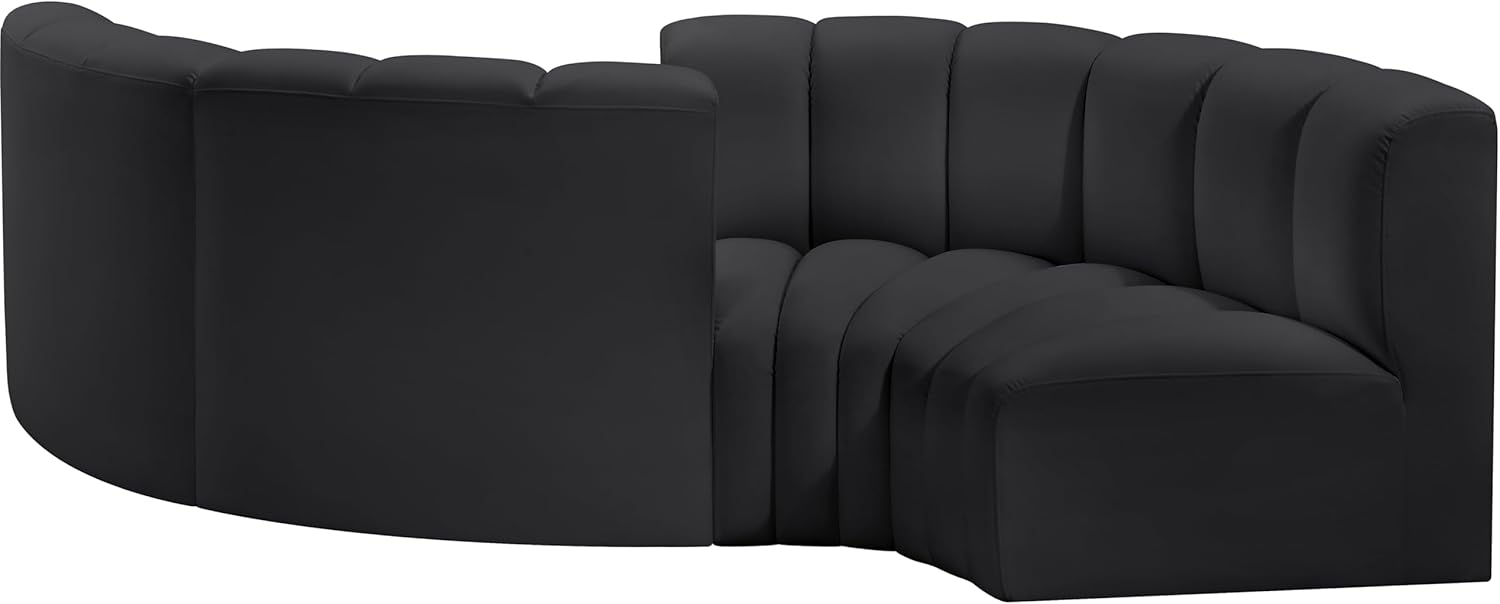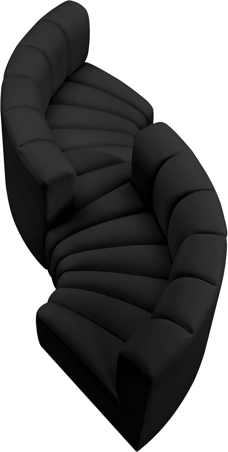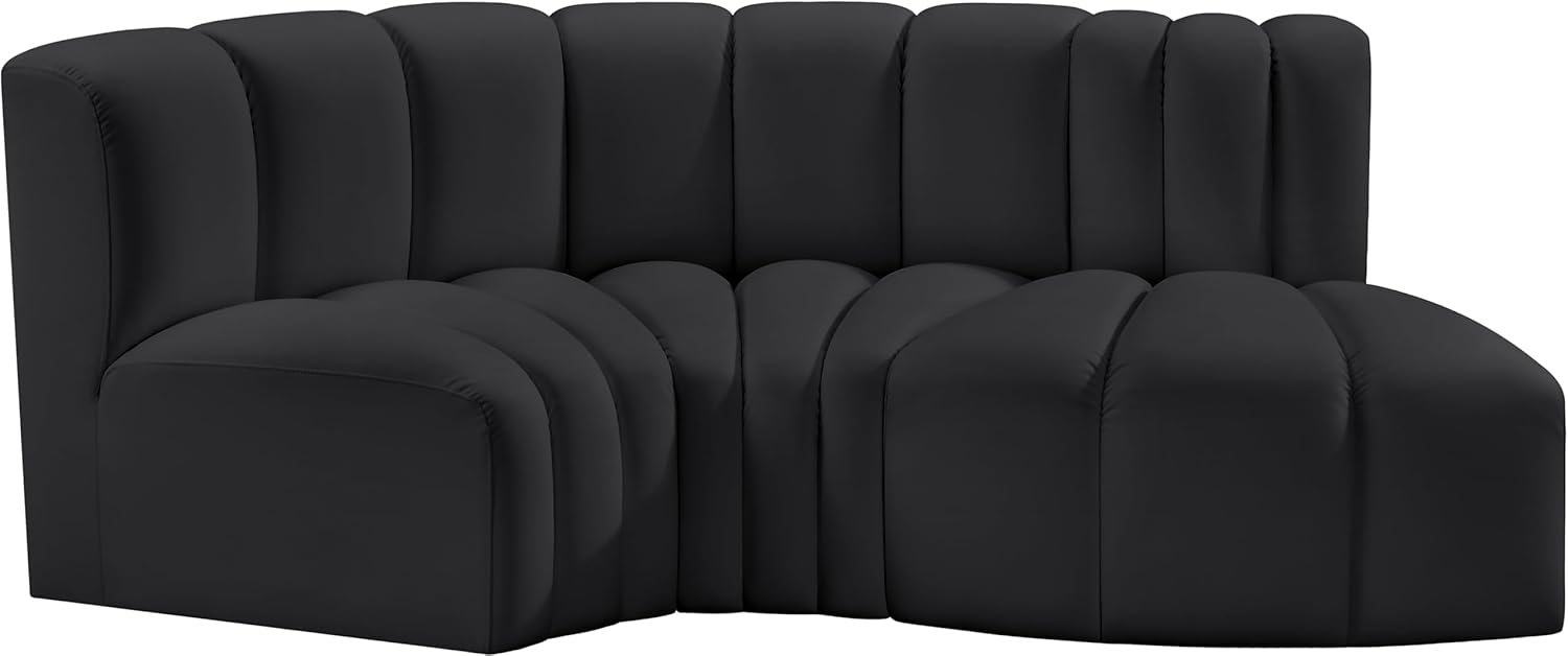Meridian Furniture Arc Collection Modern | Contemporary Sofa with Soft Vegan Leather, Deep Channel Tufting, Modular, 102" W x 36" D x 30" H, Black