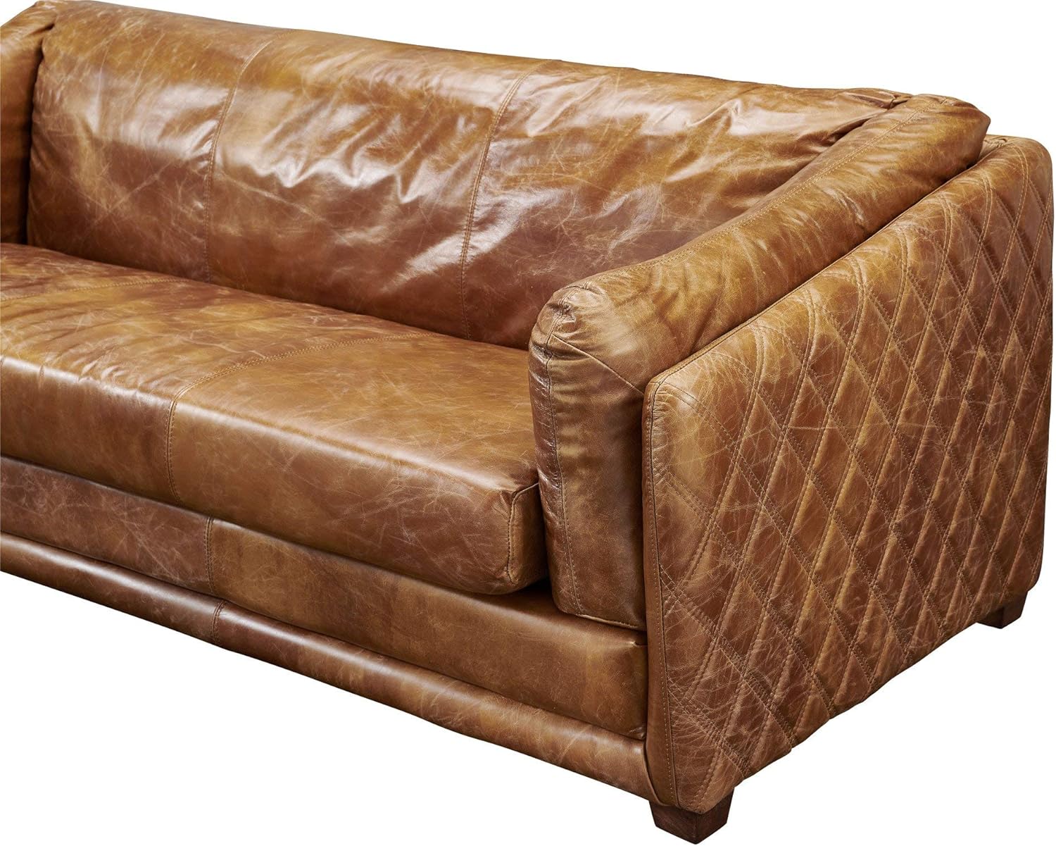 Crafters and Weavers Waco Contemporary Italian Leather Sofa in Light Brown