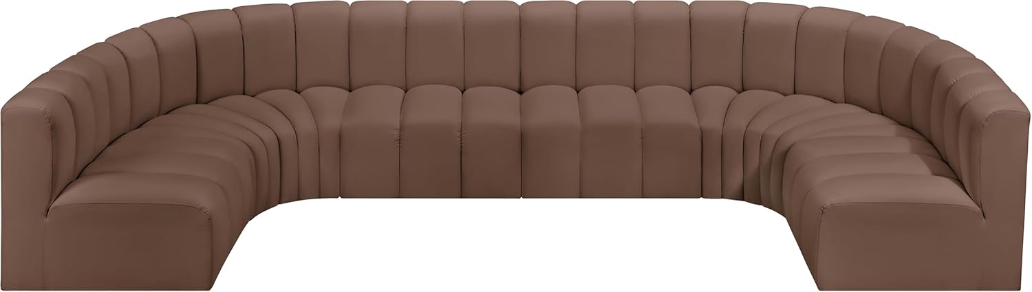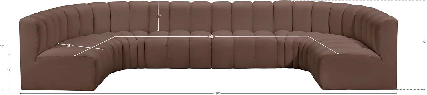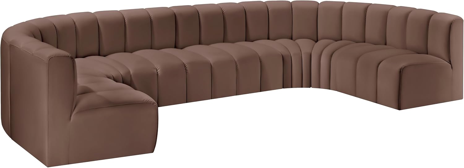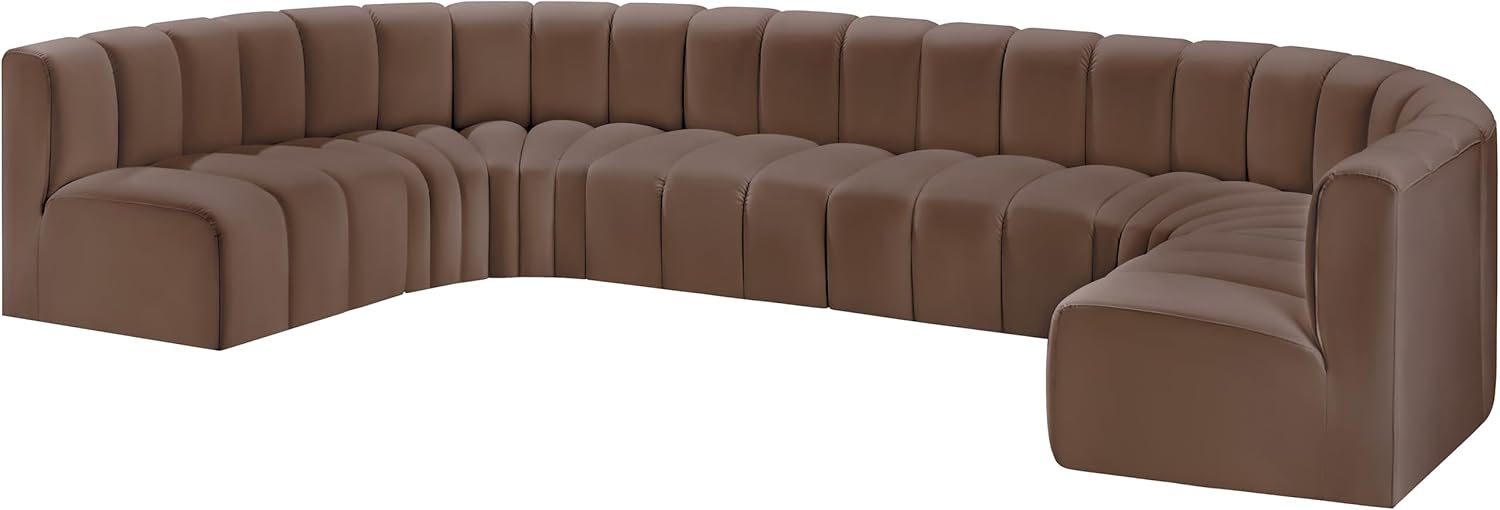 Meridian Furniture Arc Collection Modern | Contemporary Sofa with Soft Vegan Leather, Deep Channel Tufting, Modular, 150" W x 72" D x 30" H, Brown