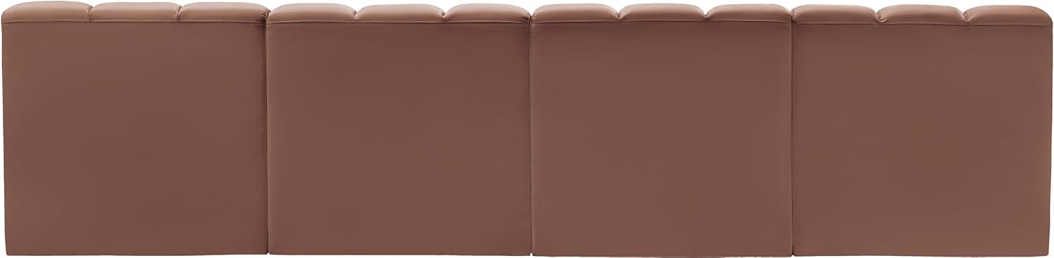 Meridian Furniture Arc Collection Modern | Contemporary Sofa with Soft Vegan Leather, Deep Channel Tufting, Modular, 119" W x 31" D x 30" H, Cognac