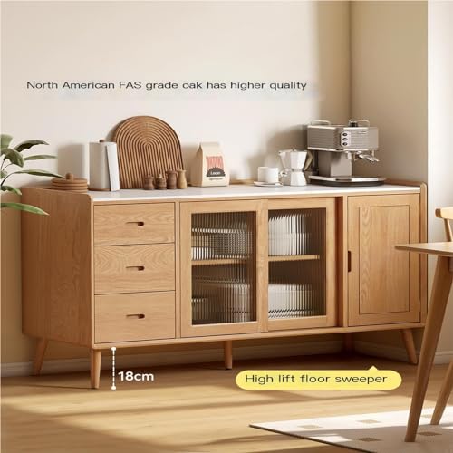 Sideboard Cabinet Solid Wood Sideboard Modern Simple Oak Cupboard Kitchen Household Storage Cabinet Multi,Functional Tea Cabinet Buffet Cabinet with Storage,