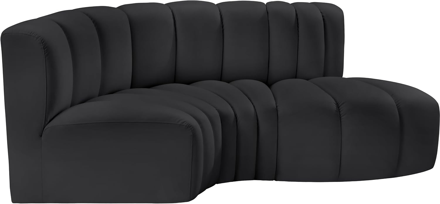 Meridian Furniture Arc Collection Modern | Contemporary Sofa with Soft Vegan Leather, Deep Channel Tufting, Modular, 70" W x 37" D x 30" H, Black