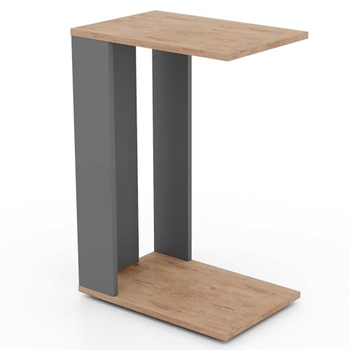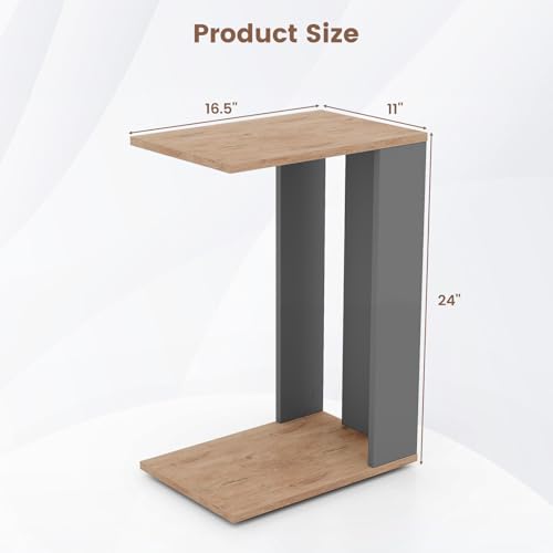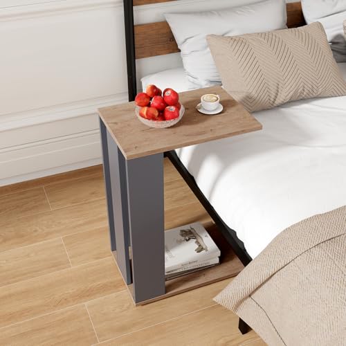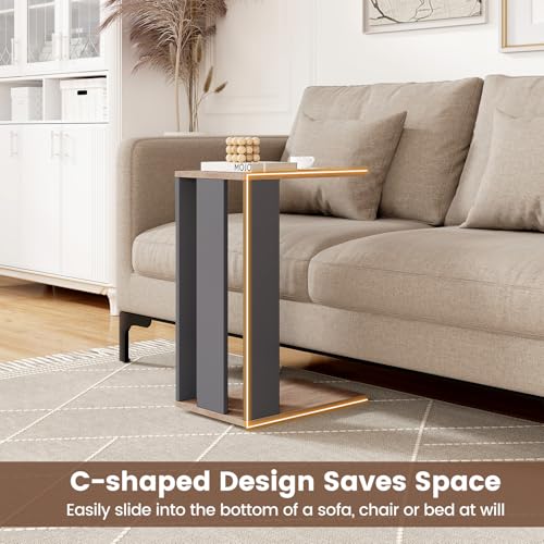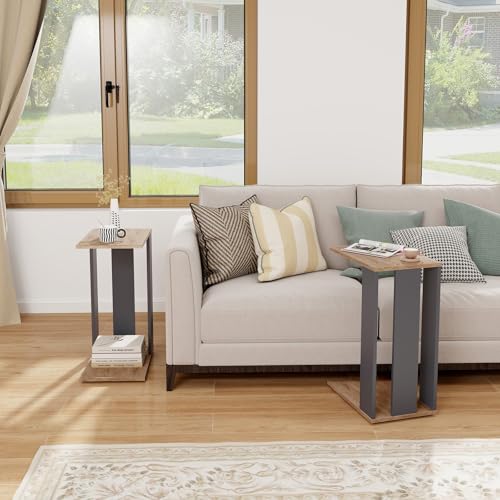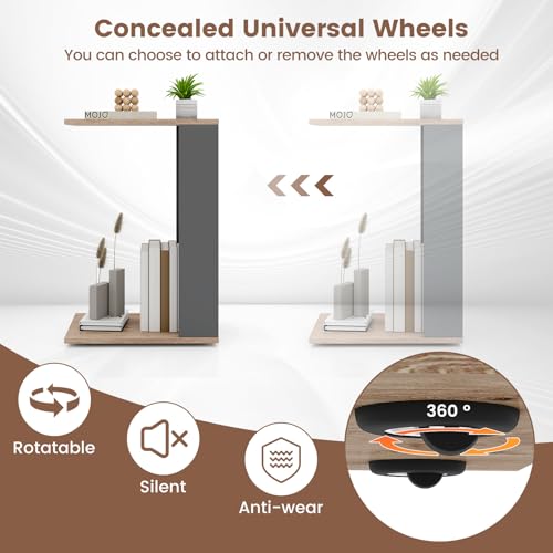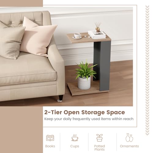 GOFLAME Rolling C-Shaped End Table Set of 2, Mobile Couch Table with Bottom Shelf & 4 Concealed Universal Wheels, 2-Tier Tray Table, Modern, Narrow Side Tables for Living Room, Bedroom, Natural