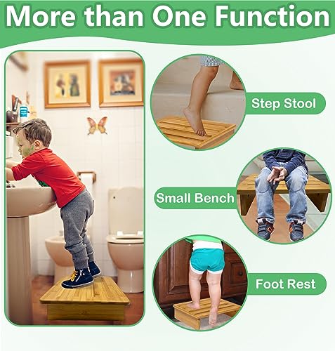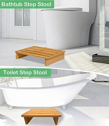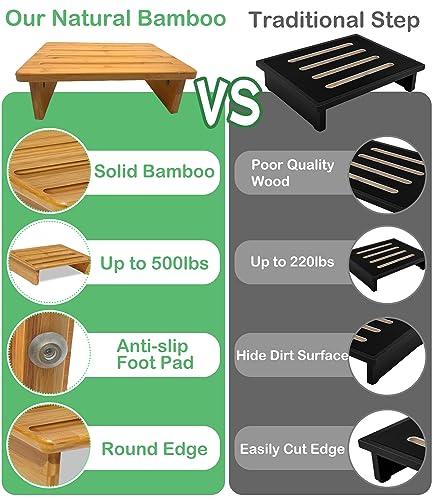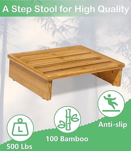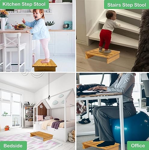 Bamboo Safety Stool Wood One Step Stool Mobility Half Step Stool Stepping Stool Foot Stool Natural Color with Solid Wood for Stairs Bed Kitchen Bathroom Cars for Adults Seniors and Kids Training