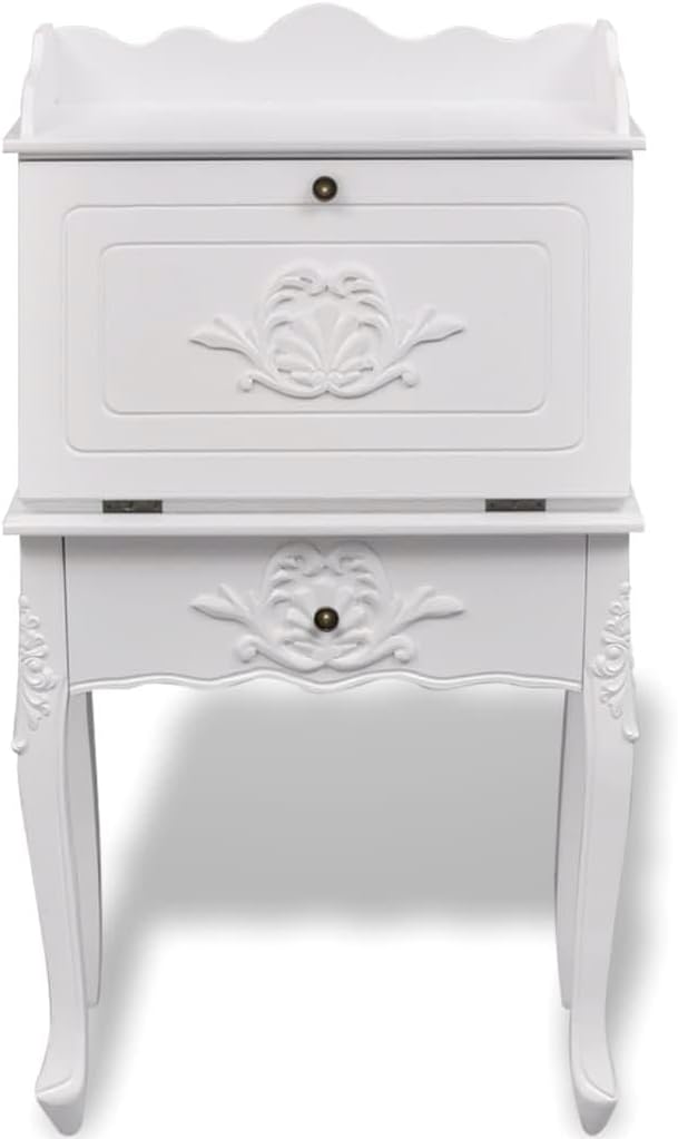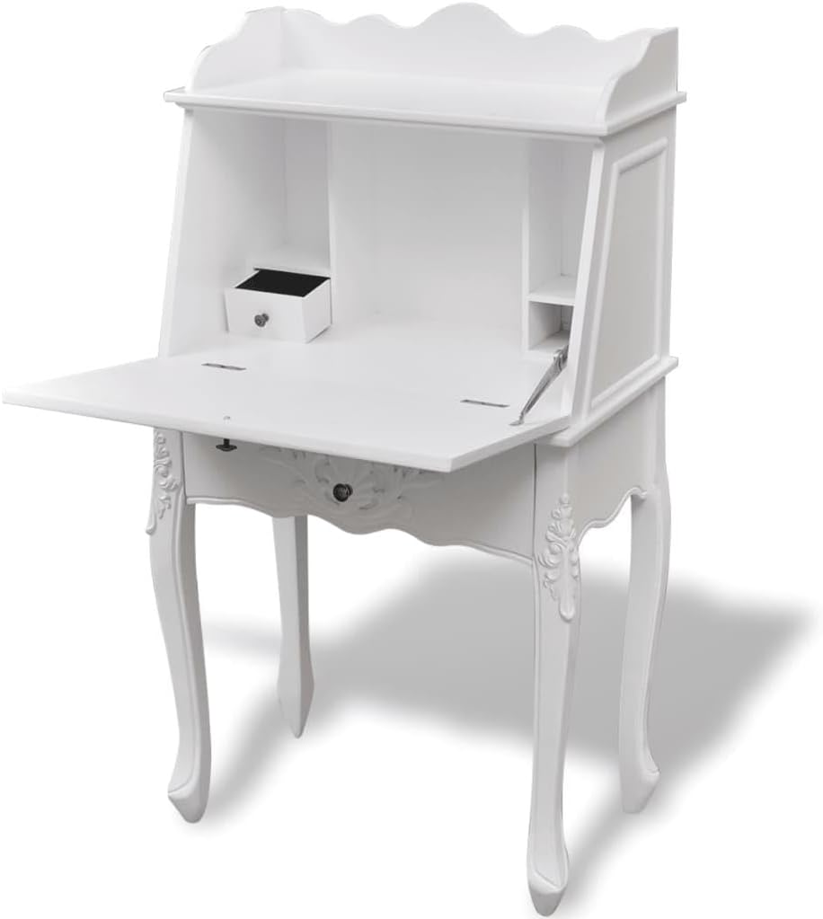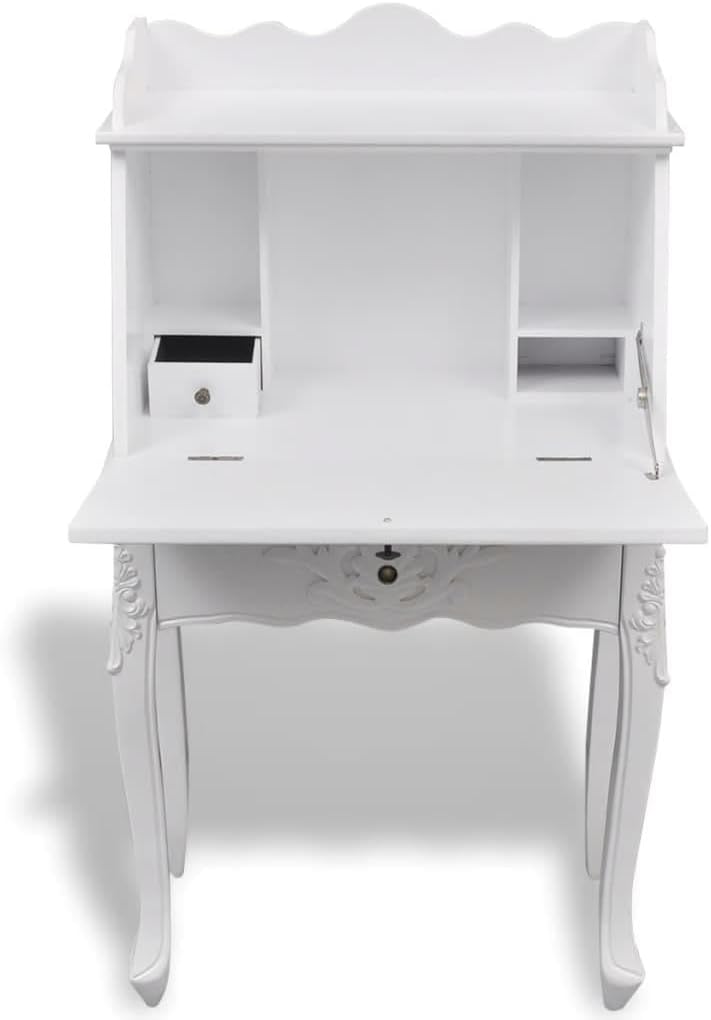 Exquisite Antique Secretary Desk - Vintage French Style Writing Table for Home Office - Classic Rustic Design with Elegant Wooden Finish-White