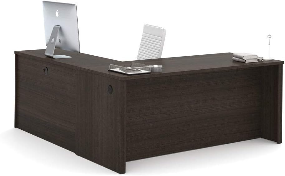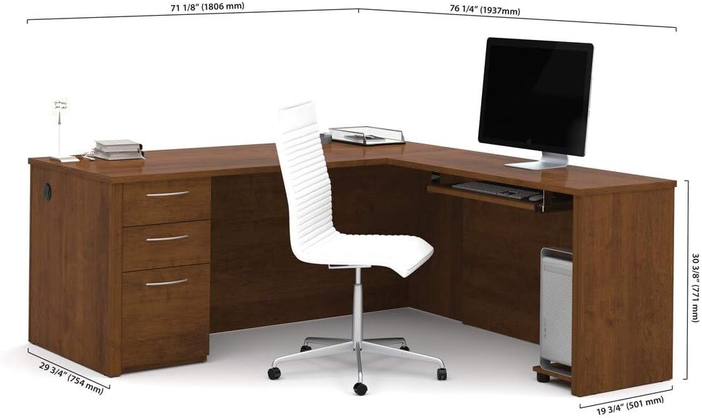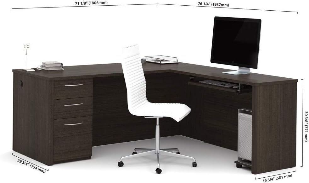 Bestar Embassy L-Shaped Desk with Pedestal, 72W, Dark Chocolate