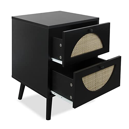 ORRD Nightstand Set of 2 with Rattan Storage Drawers, End Table Side Table Wooden Coffee Table Accent Home Decor for Living Room, Bedroom (Natural)