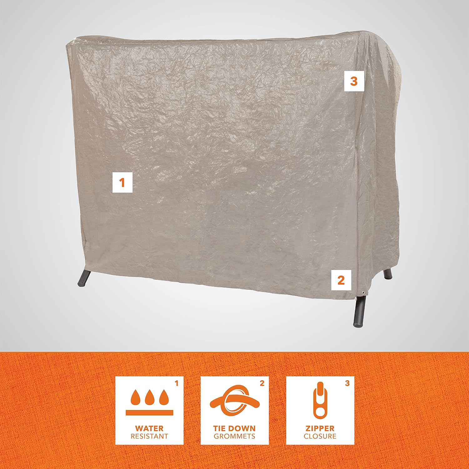 MODERN LEISURE 2-Seater Patio Outdoor Swing Cover - Waterproof and Weather-Resistant Fabric - Furniture Protection Perfect for Patio, Deck, and Porch - 87" L x 64" W x 66" H - Khaki