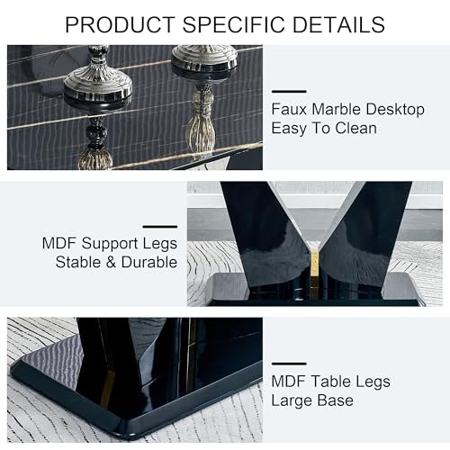 7 Piece Dining Table Set, Kitchen Table and Chairs Set for 6, 63'' Rectangular Dining Table With 0.4" Tempered Glass Tabletop and MDF V-Shaped Bracket&Black Base, 6 PU Leather Chairs for Dining Room.