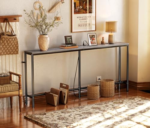 70 Inch Console Table, Sofa Table with Charging Station, Entryway Table, Behind Couch Table, for Living Room,Rustic Brown