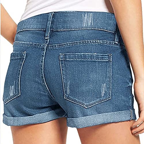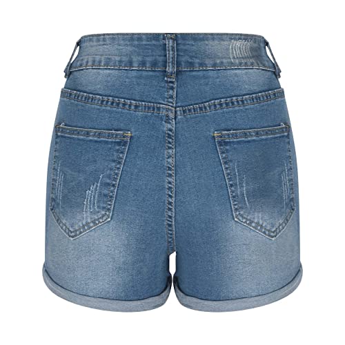 Womens High Waisted Stretchy Denim Shorts Casual Summer Frayed Raw Hem Distressed Ripped Short Jeans