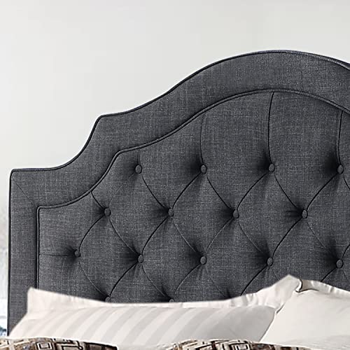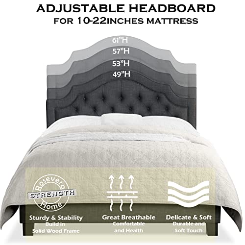 Rosevera Jardin Button Tufted Platform Bed Frame/Fabric Upholstered Bed Frame with Adjustable Headboard/Wood Slat Support, Twin, Sky Gray
