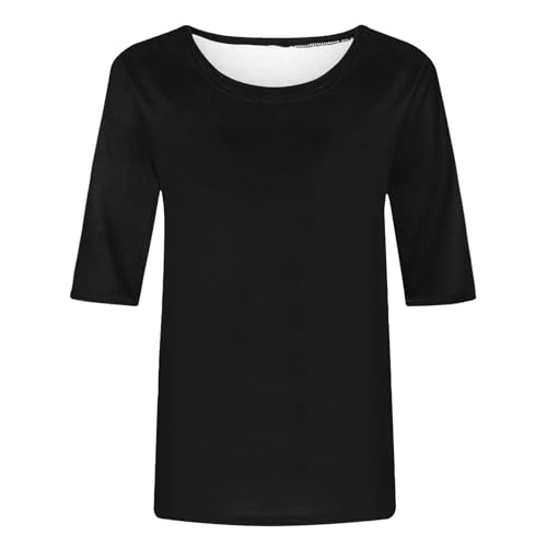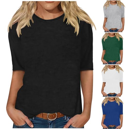 3/4 Sleeve T Shirts for Women Loose Fit Crewneck Shirts Cute Solid Color Blouses Three Quarter Length Tunic Tops