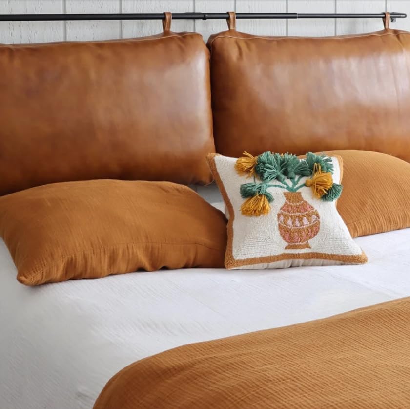 Genuine Leather Headboard Cover- Brown Bed Frame Headboard Cushion- All Sizes Headboard Set- Twin Size Bed Headboard Easy to Install - cushions only (King (39W x 19.5 H x 3D))