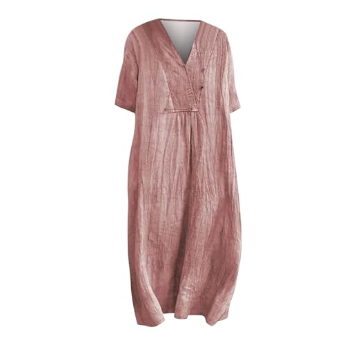 Dresses for Women 2024 Women's Linen Short Sleeve Dress Vintage Floral Art Print Casual Flowy Dress