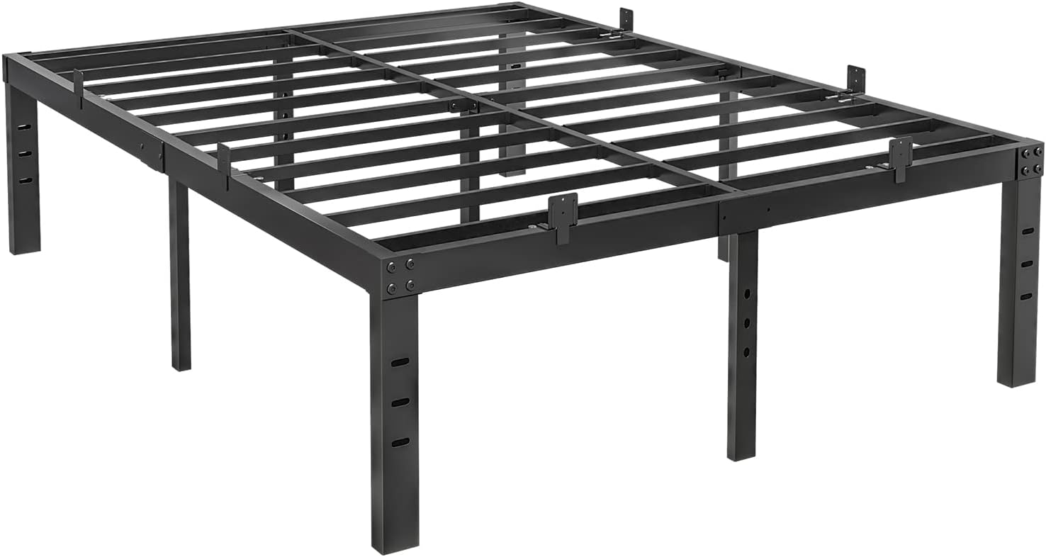 COMASACH 18-Inch King-Size Bed-Frame with 6 Pcs Mattress Gaskets, Heavy Duty Metal Tall Platform Bed Frames, Non-Slip Mattress-Foundation Support to 3500Lbs,Noise Free, No Box Spring Needed, Black