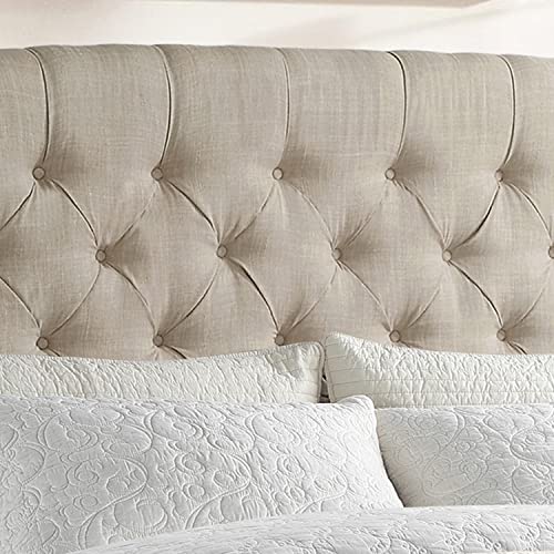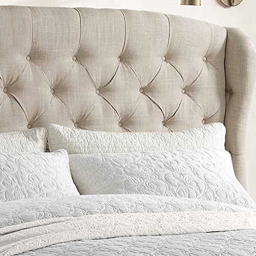 Rosevera Torrey Wingback Bed/Tufted Headboard Adjustable Height Bed Frame/Fabric Upholstered Bed Frame/Wood Slat Support/Easy Assembly,Twin,Beige