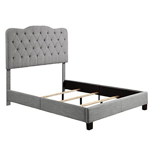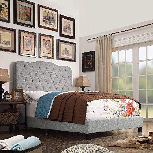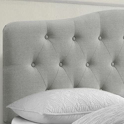 Rosevera Gabriel Adjustable Headboard Bed with Linen Upholstery for Bedroom, Queen, Dark Gray