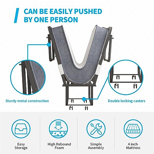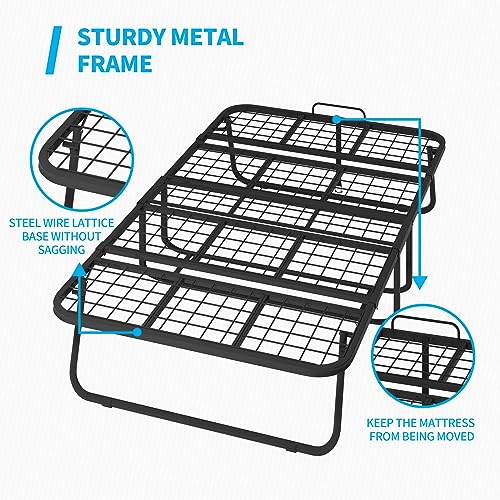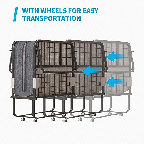 Mjkone Folding Bed with 5 Inch Memory Foam Mattress, Single Rollaway Bed for Guests, Space Saving Portable Bed with Lockable Wheels, Easy Assembly & Moving, 75 x 46 (Upgraded)