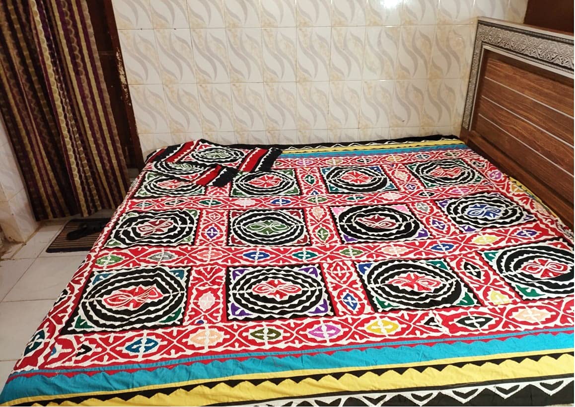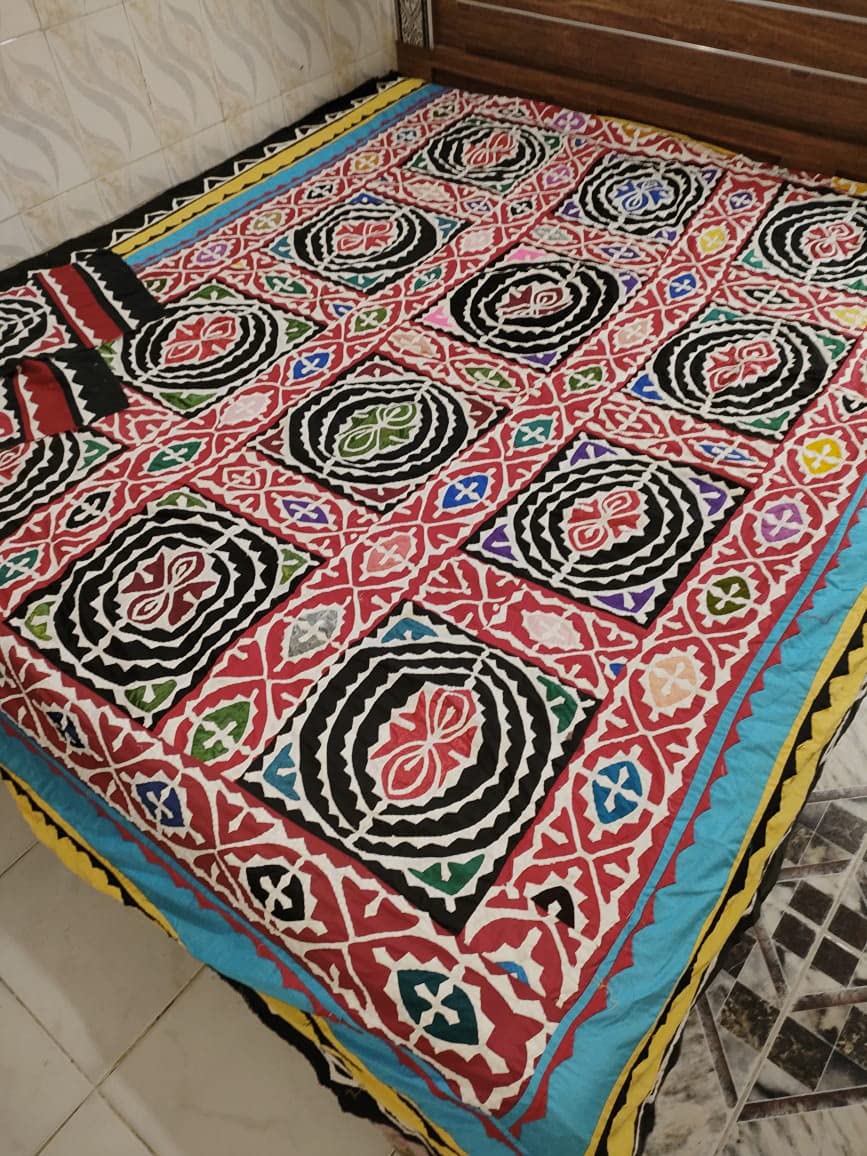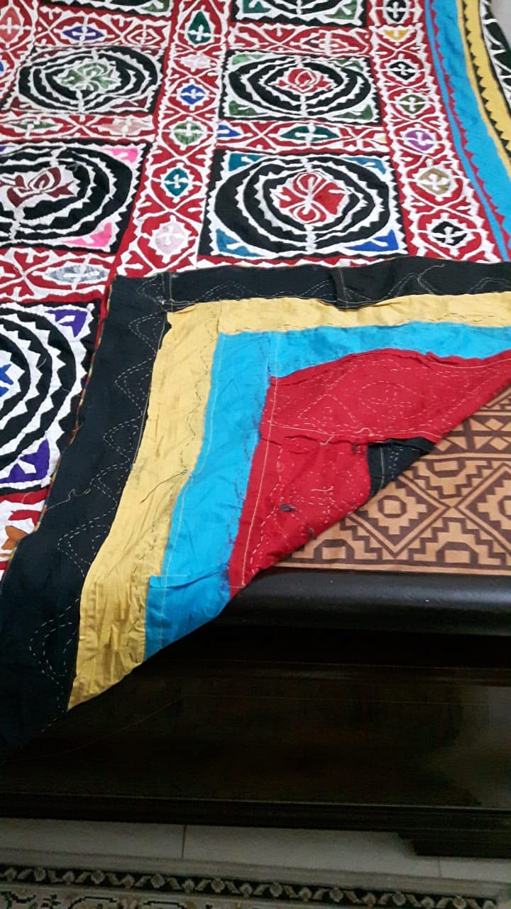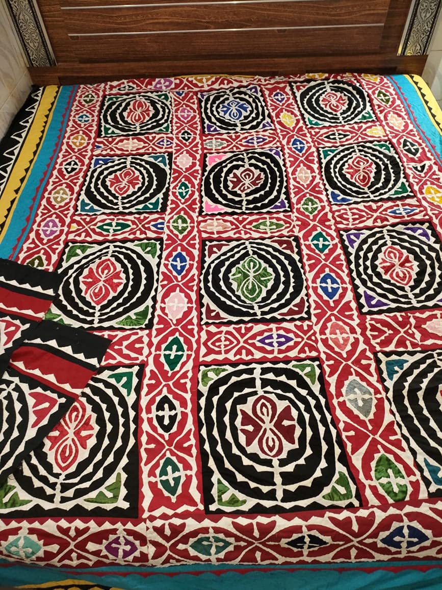Ralli Gee's bend Sindhi handmade Rilli luxury applique patchwork traditional colorful King size bedsheet with two pillow covers