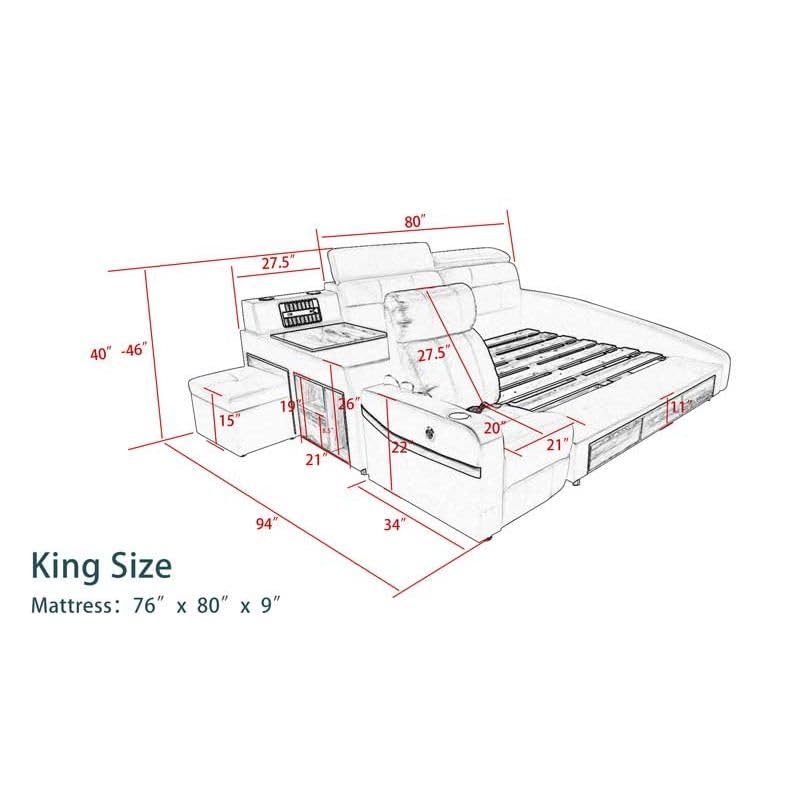 King Bed with Luxury Features, Massage Function and Storage Space - King Size