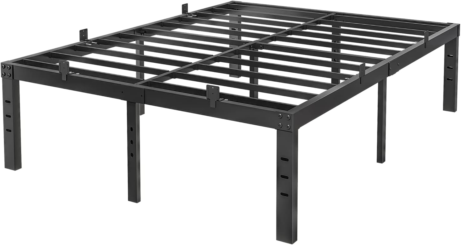 COMASACH Bed Frame King and 6 Pcs Non Slip Mattress Gaskets, No Box Spring Needed, 14 Inch Black Metal Platform Bed Frames, 4000Lb Heavy Duty Steel Slat Support, Noise Free Mattress Foundation