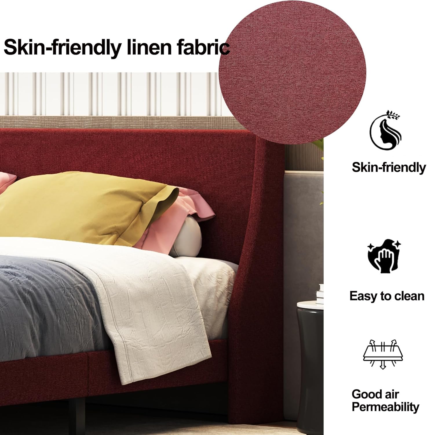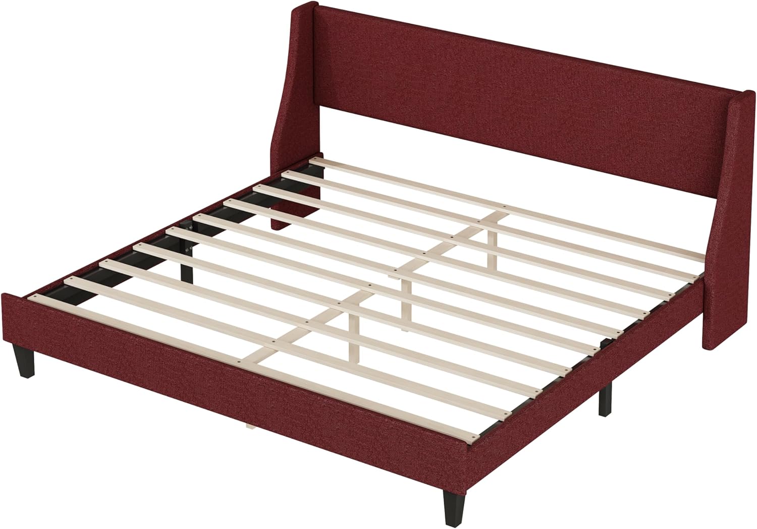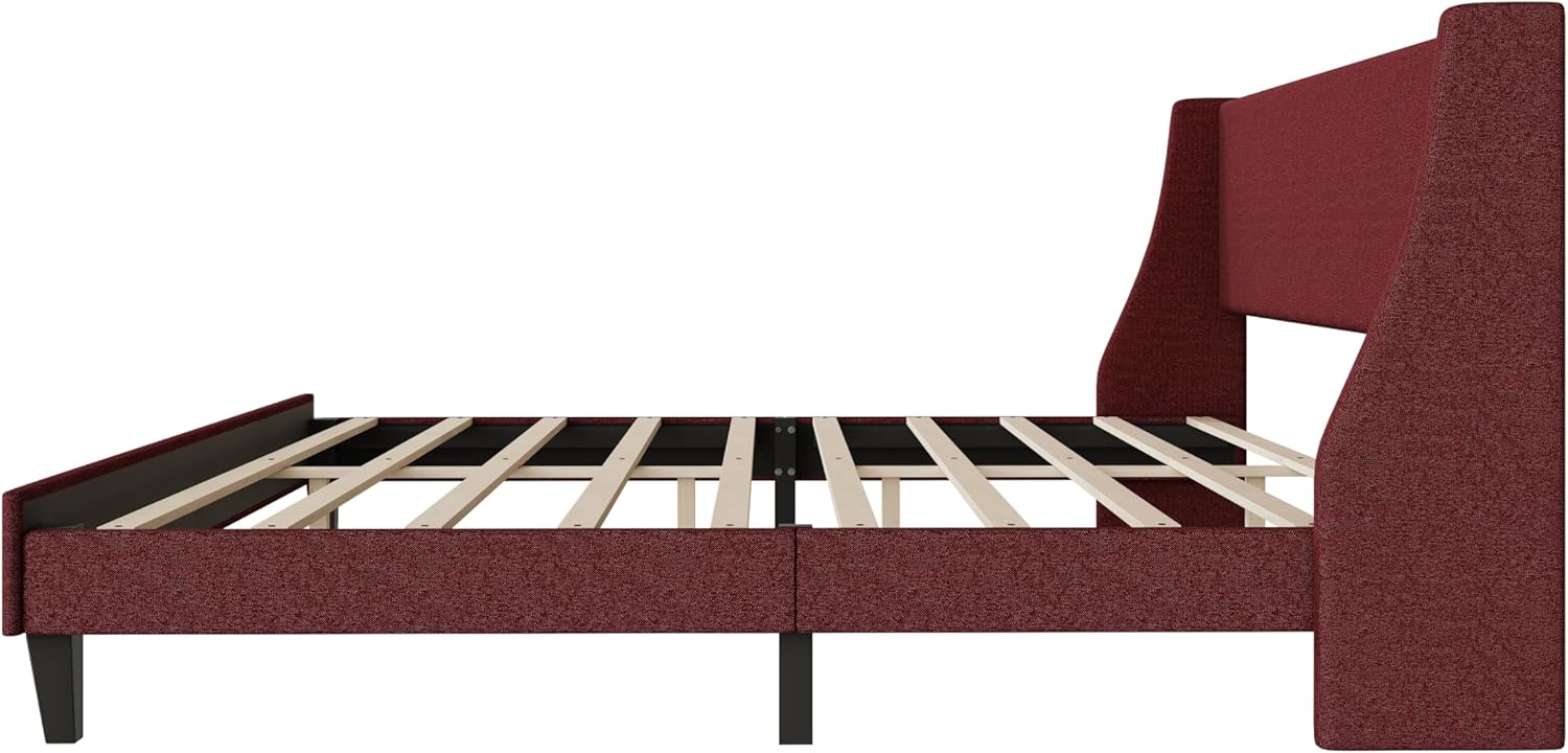 Luxury Linen Elegance: King Size Upholstered Bed Frame with Adjustable Headboard, Wooden Slats, No Box Spring Needed, Easy Assembly, Mattress Foundation, Orange