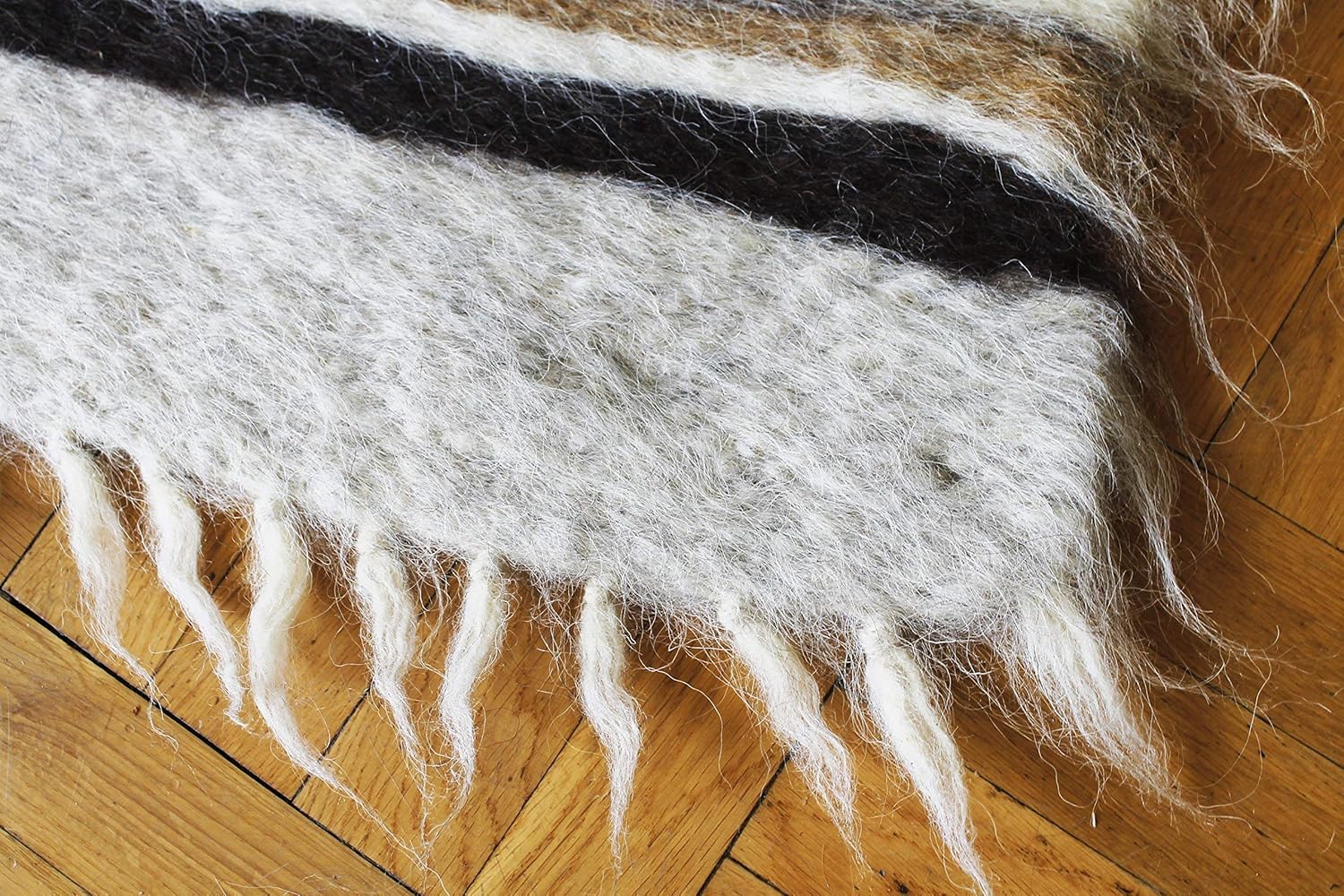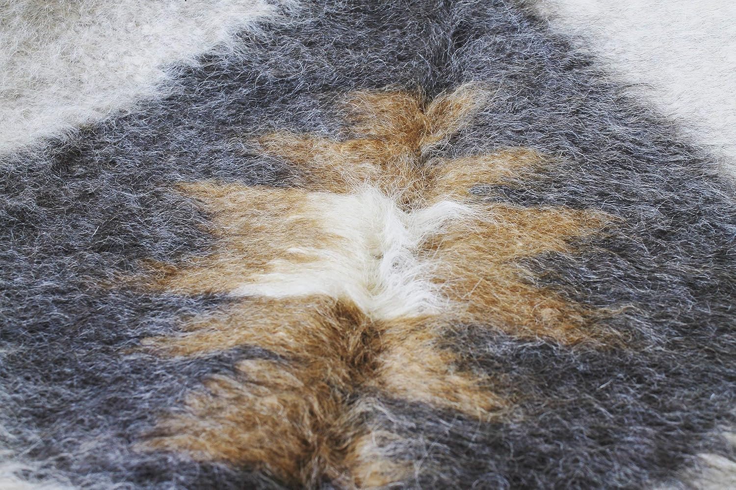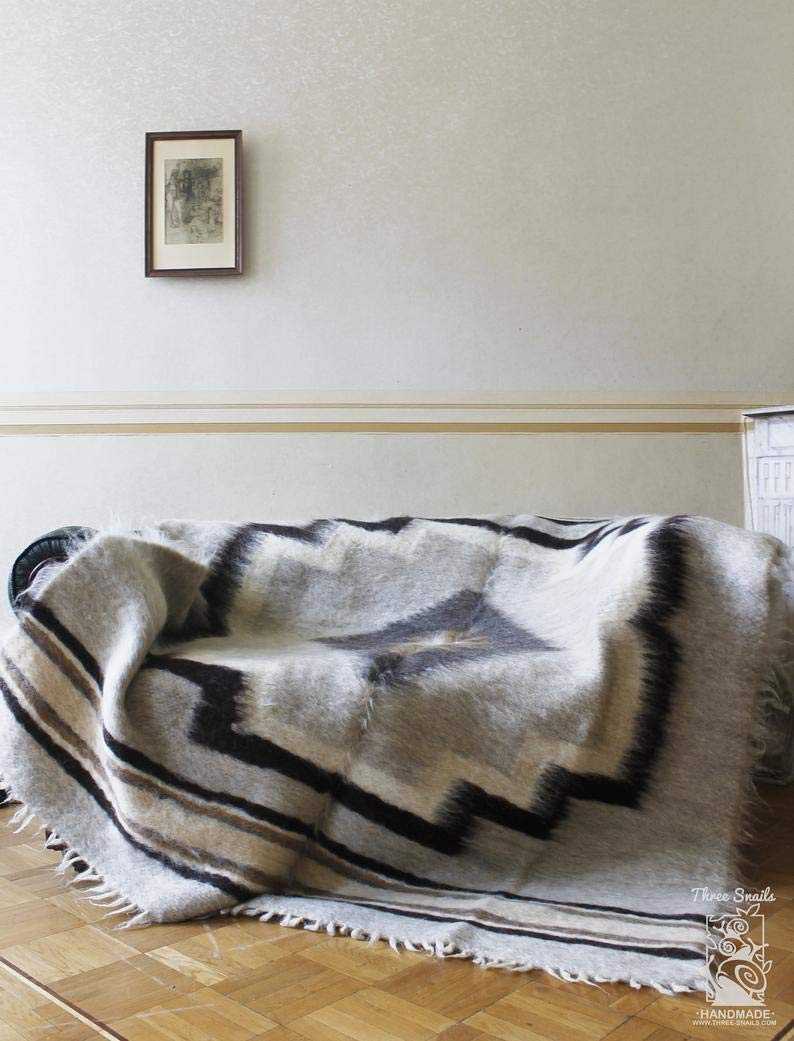 White gray Wool Throw Blanket, Fuzzy plaid for living room, Boho sofa bedspread Thick weighted Cover Pattern Geometric Heavy Bed Coverlet, Handmade Kilim fluffy Hand Woven Aztec modern flokati