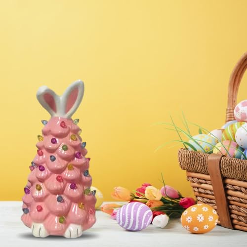 Todays Deal Easter Bunny Tree Decorations, 9.64 Inch Light up Easter Bunny Tree with Colorful Lamp Beads, Artificial Ceramics Bunny Tree for Indoor Spring Home Bedroom Office Decor