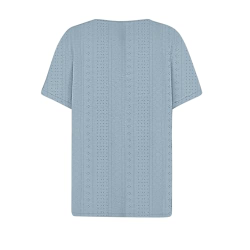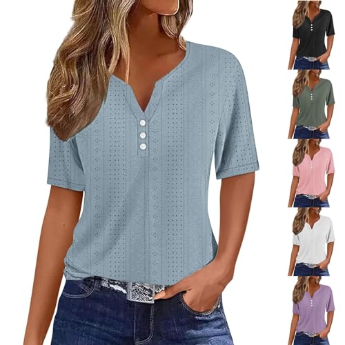 Shirts for Women Trendy Summer Eyelet Embroidery Tops Button Down V Neck Blosues Casual Short Sleeve Tunic