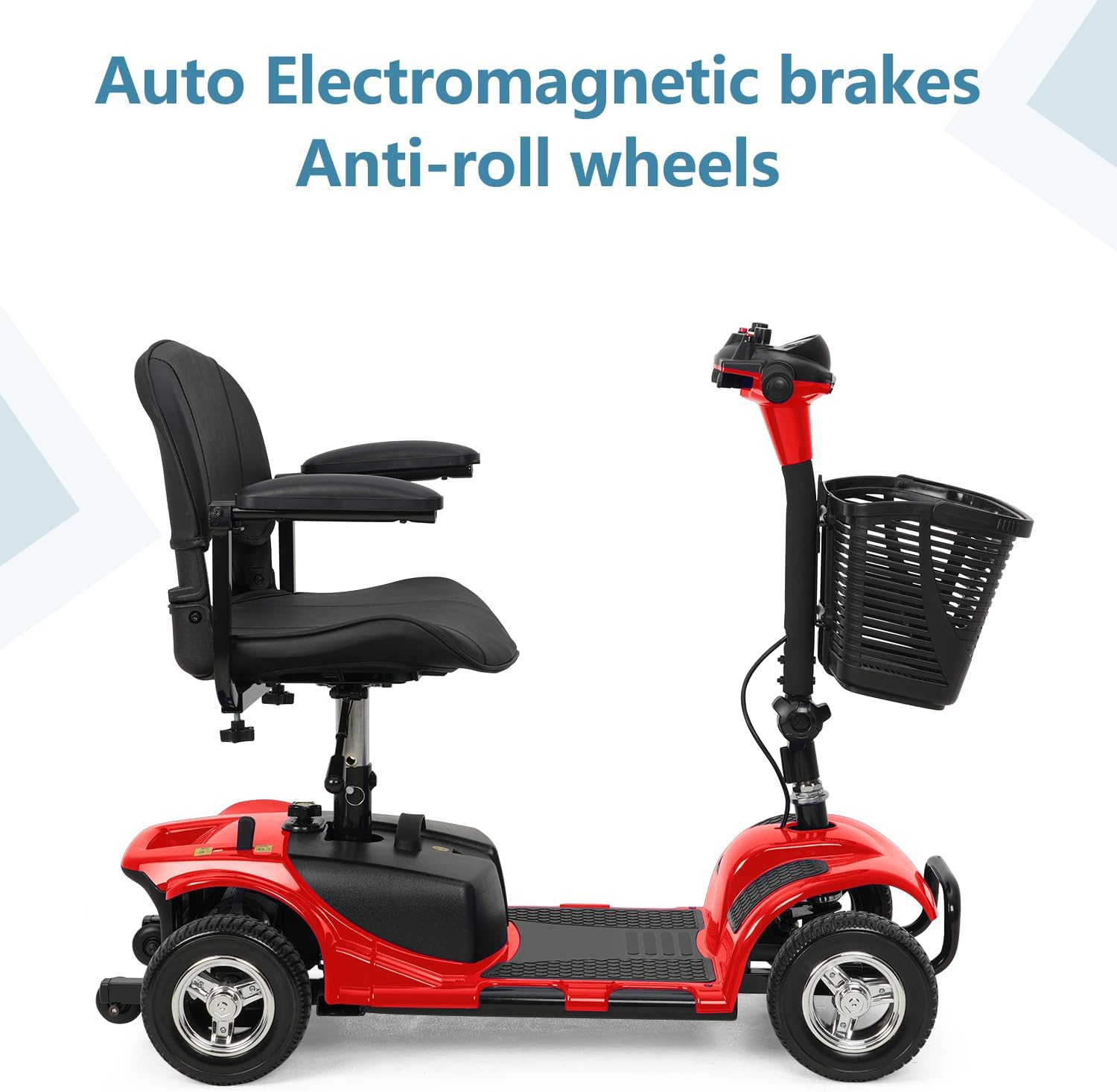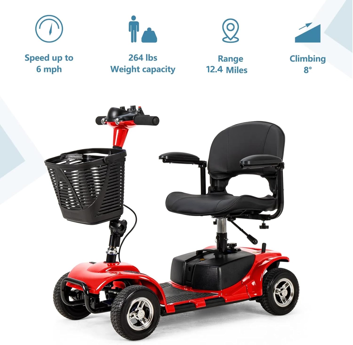 4 Wheel Mobility Scooter, Electric Power Mobile Scooters with Lights, Basket and Extended Battery, Collapsible and Compact Duty Travel Scooter w/Height-Adjustable Swivel Seat, for Seniors Adult, Red