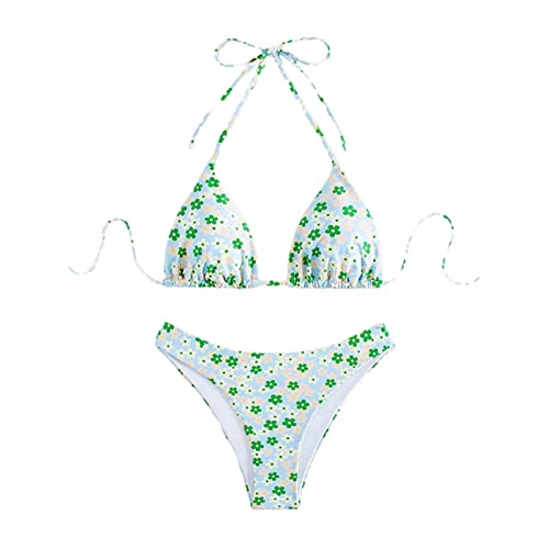 Thong Bikini Swimsuit, Women Two Piece Swimsuit Sexy Swimwear Halter String Triangle Bikini Sets