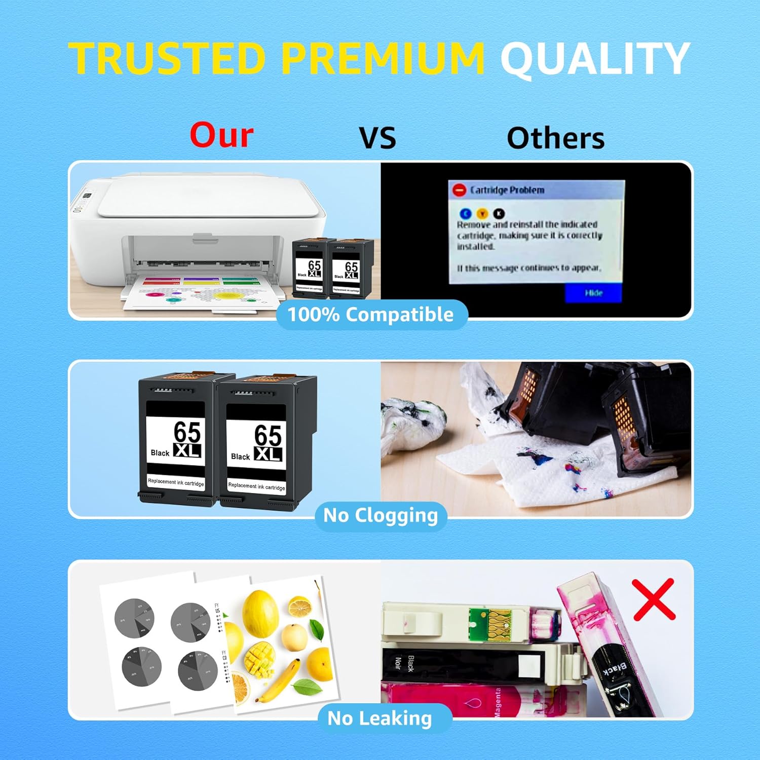 Ink Cartridge Replacement for HP 65 Black Ink Cartridge HP 65 XL 65XL for HP Deskjet 3755 Ink Cartridges 3700 3752 2652 2622 2655 Envy 5055 5052 Printer High Yield (2-Pack, Black)