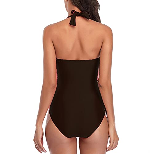 One Piece Swimsuit Women, Women V Neck One Piece Swimsuit Halter Backless Ruched Tummy Control Bathing Suit