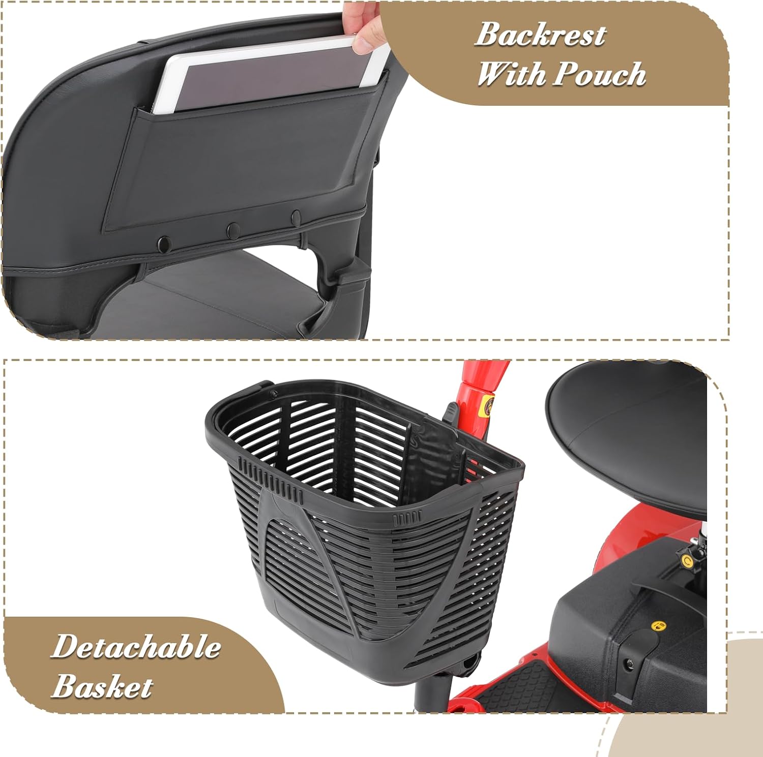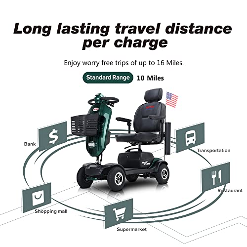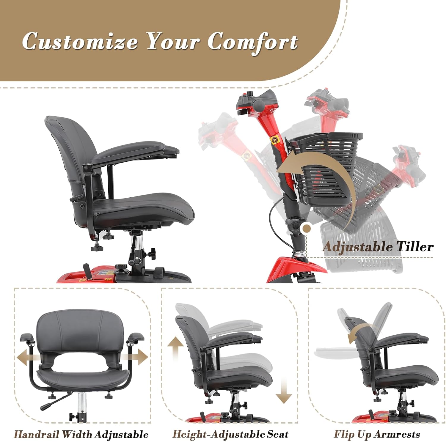Enhanced Electric Mobility Scooter for Adults and Seniors - 300 lbs Max Weight, 4-Wheel Powered Mobility Scooters Wheelchair Device for Travel, Elderly