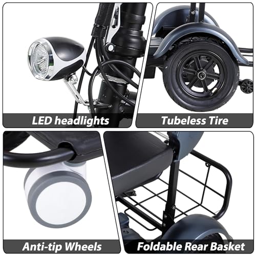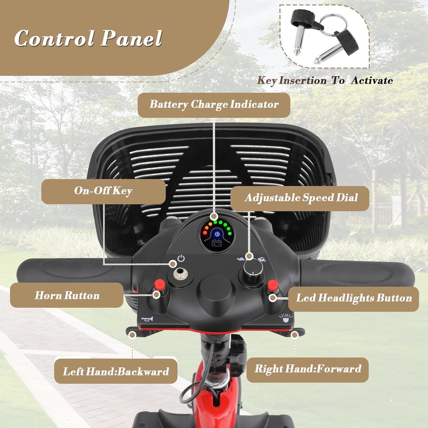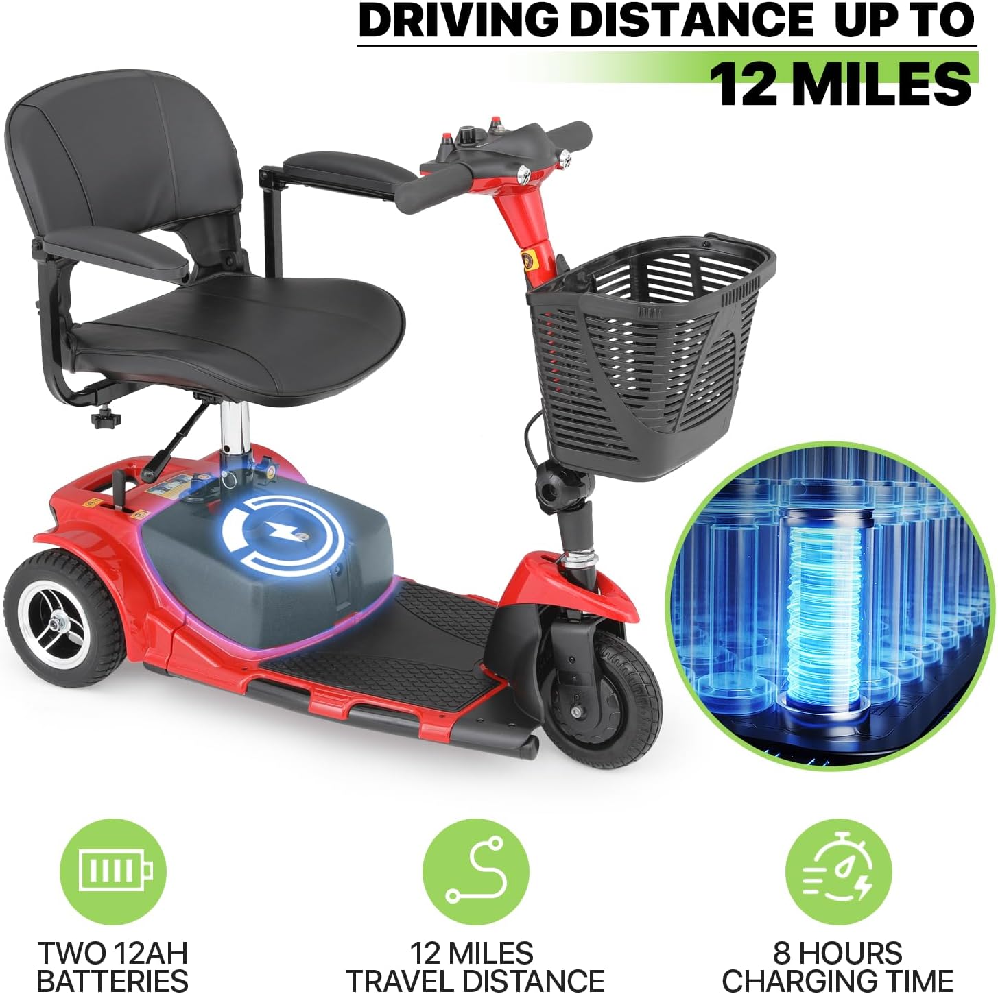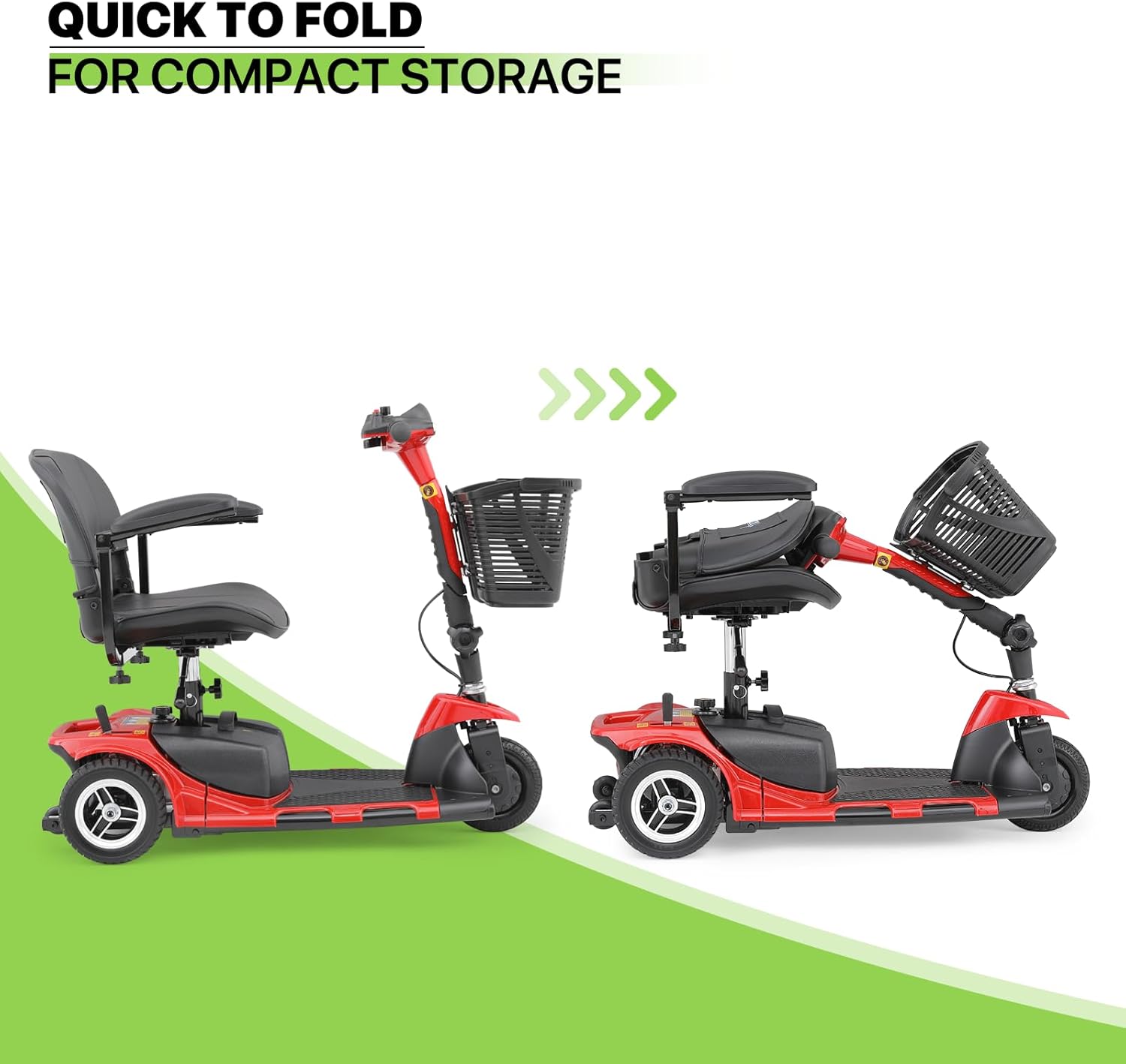 Enhanced Electric Mobility Scooter for Adults and Seniors - 300 lbs Max Weight, 4-Wheel Powered Mobility Scooters Wheelchair Device for Travel, Elderly