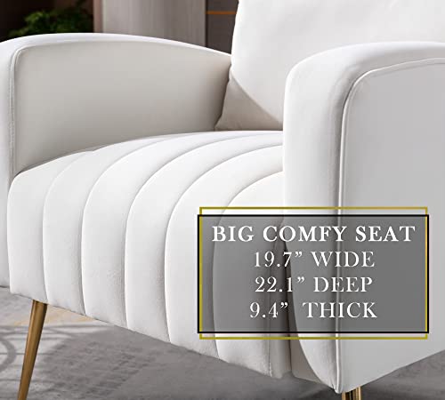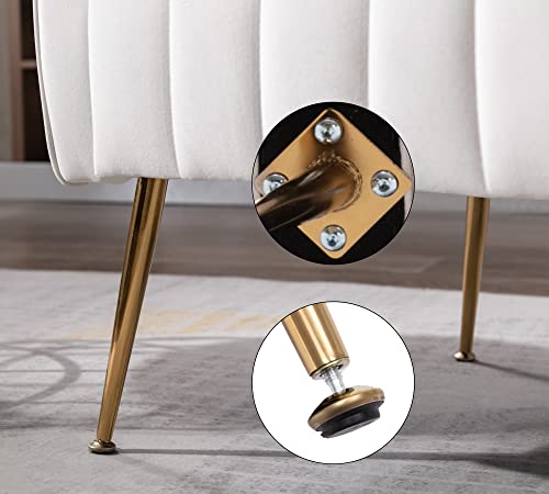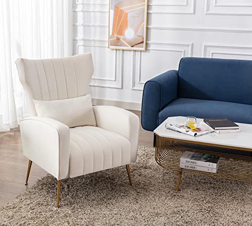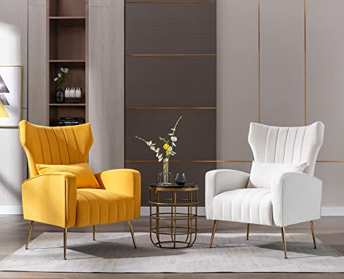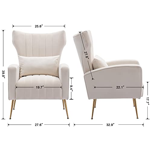 Velvet Accent Armchair Set of 2 for Living Room and Bedroom Comfy Reading Lounge Chair with Modern Wingback and Gold Legs on Side Corner, White
