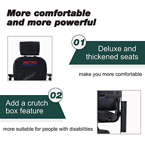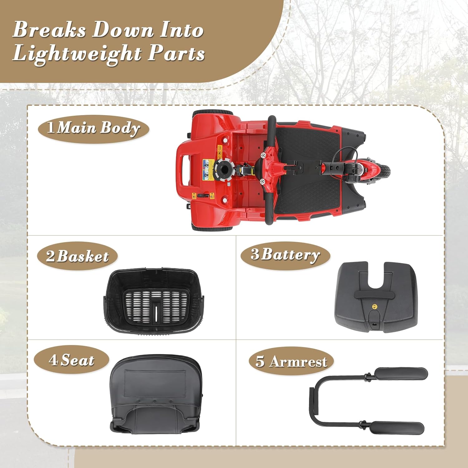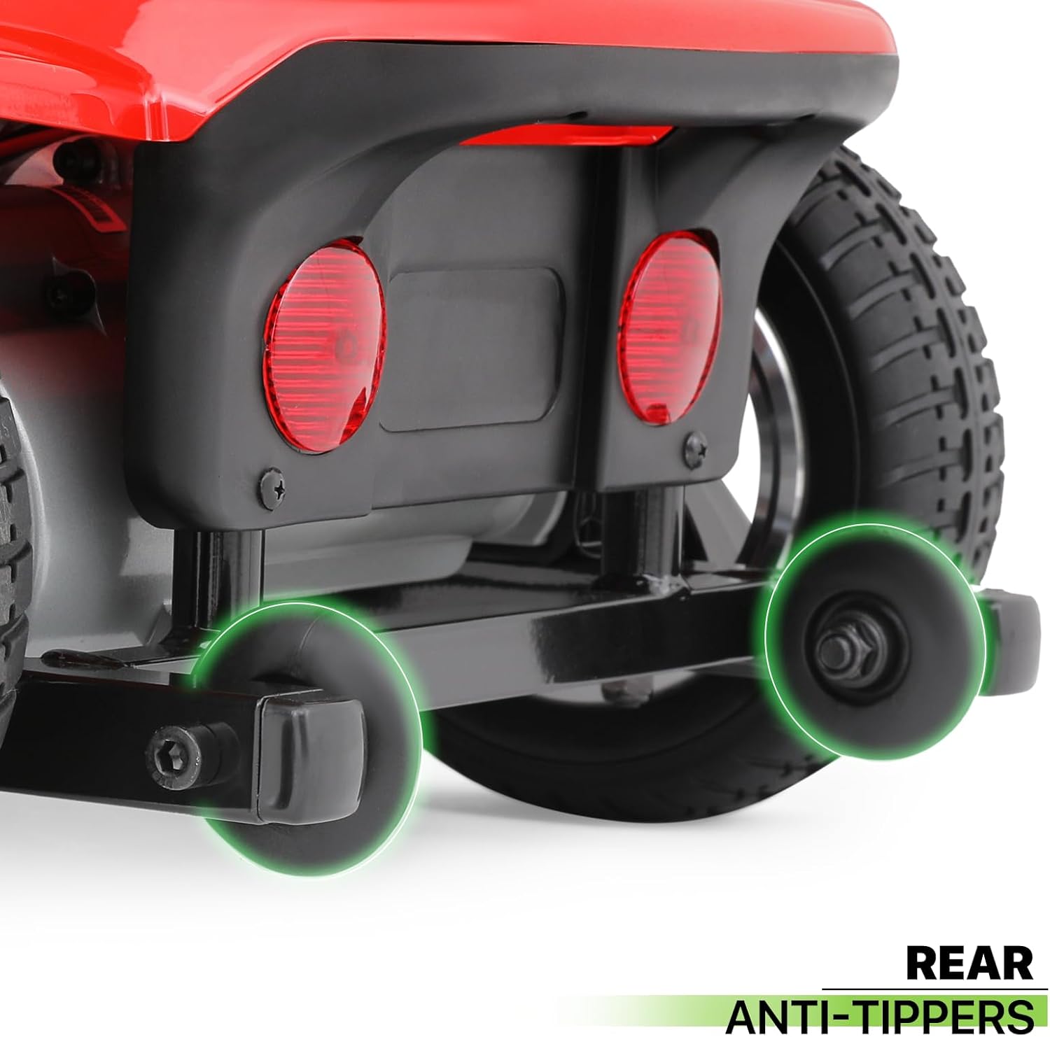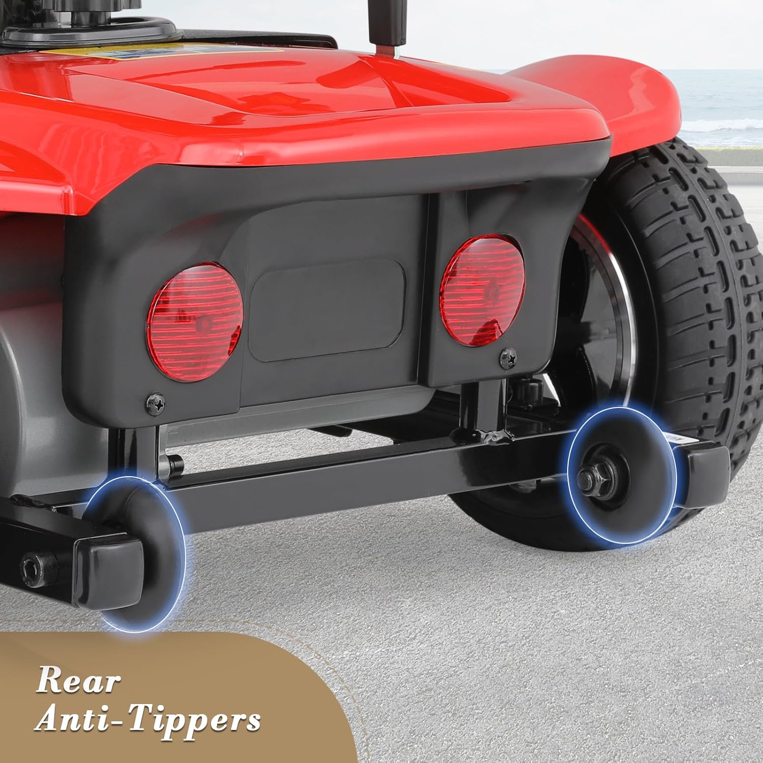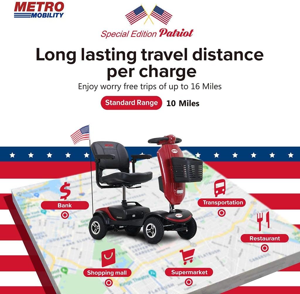 Metro Mobility 4 Wheel Powered Mobility Scooters for Seniors - 300 lbs Capacity Electric Scooter with Seat for Adults, Travel - Long Range Power Extended Battery & USB Charging Port - Red