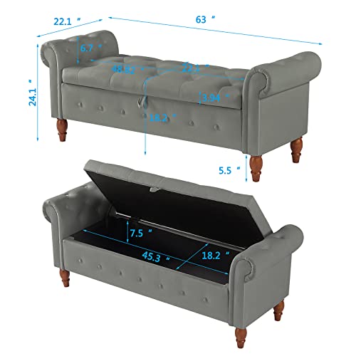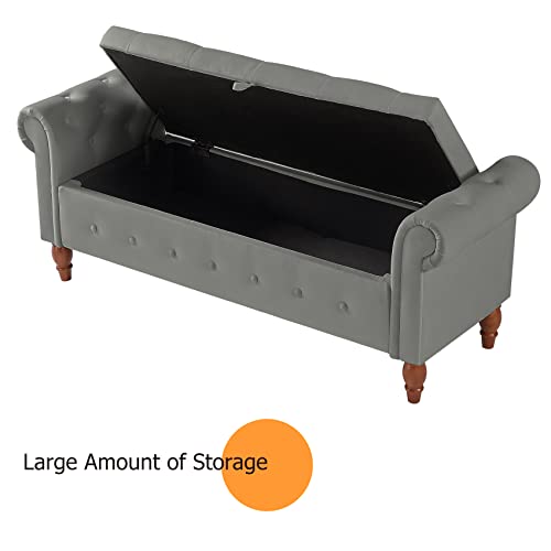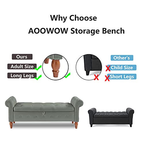 Aoowow Storage Bench for Bedroom End of Bed Rolled Armed Linen Fabric Ottoman Couch Long Bench Window Sitting Fireplace Toy Storage Bench,Olive Green