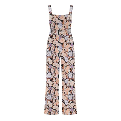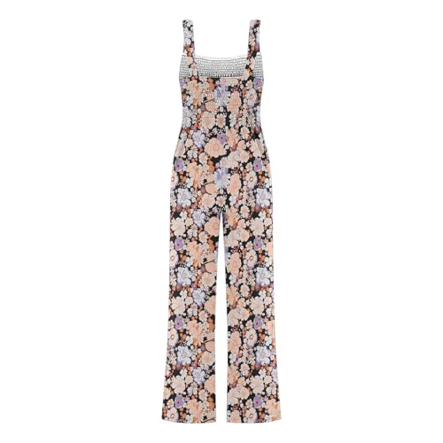 Womens Sleeveless Overalls Jumpsuits Casual Loose One Piece Printed Wide Leg Long Pant Rompers with Pockets