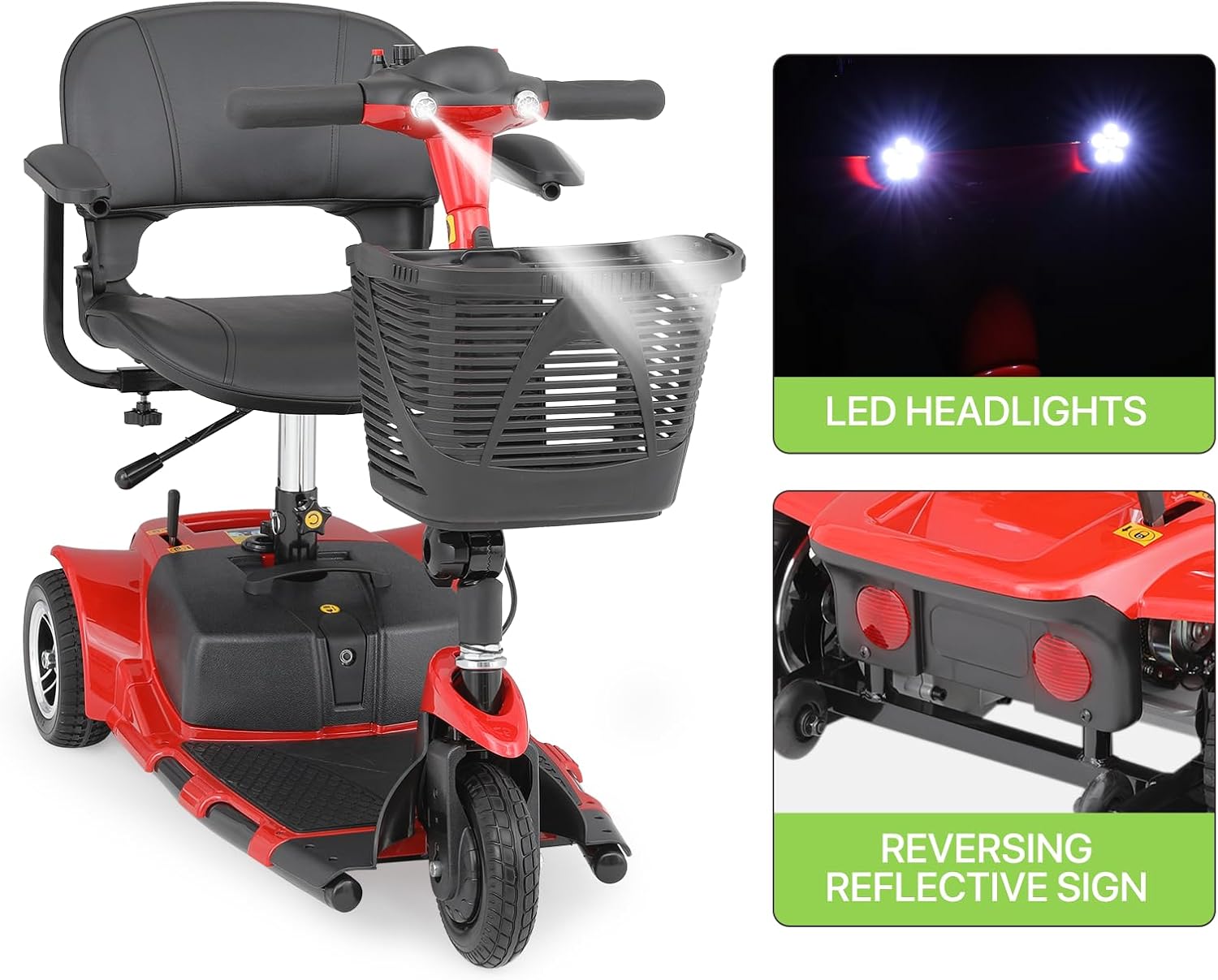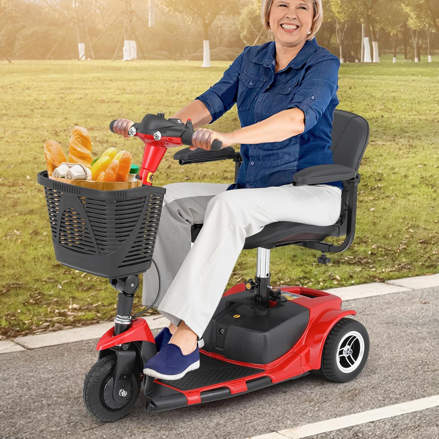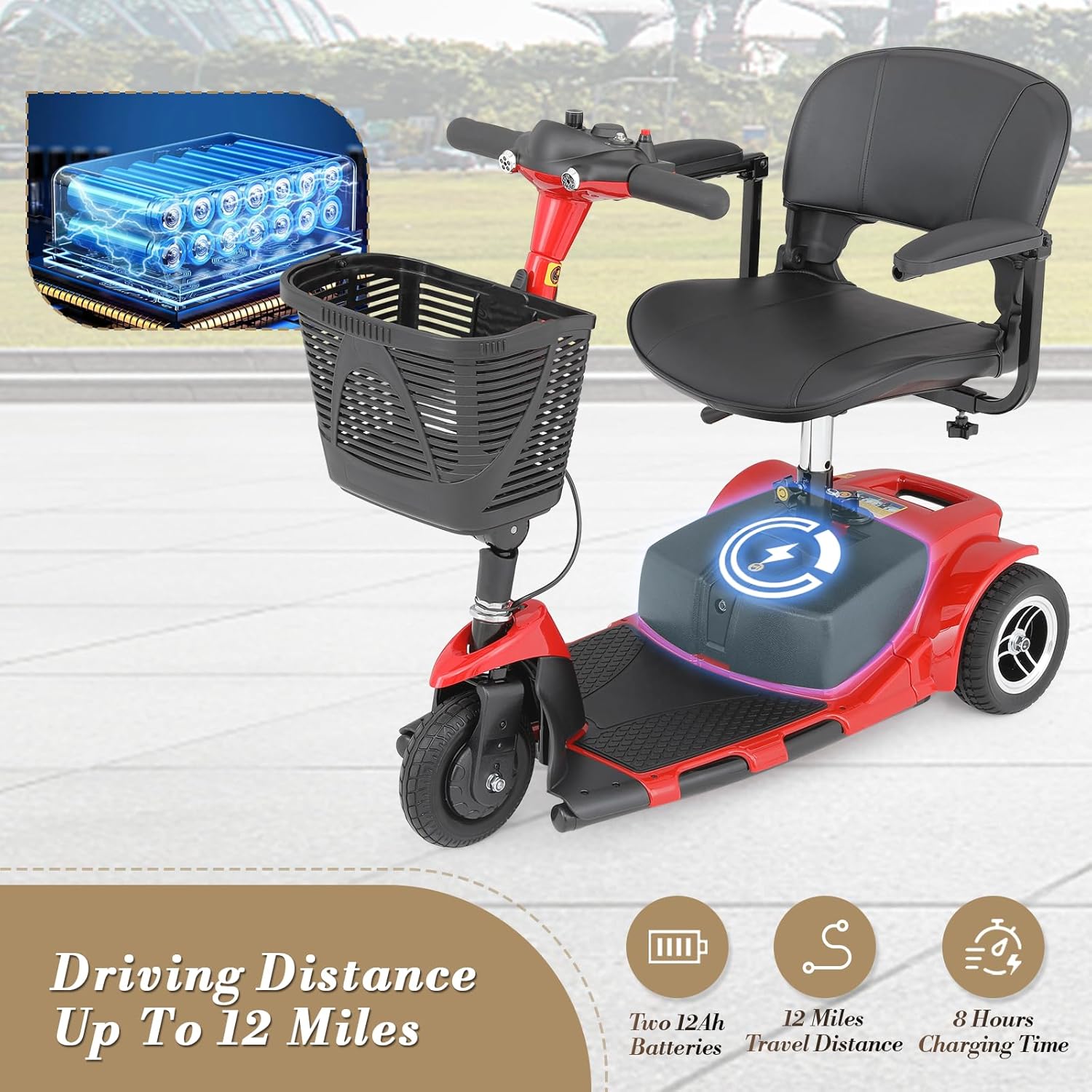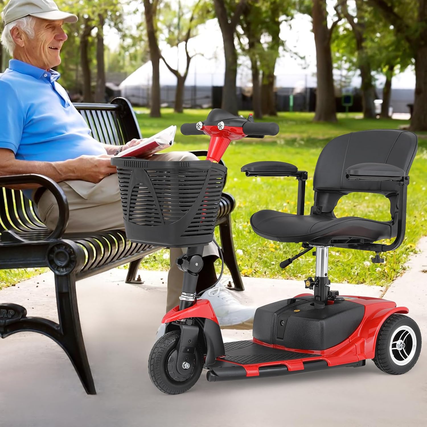 Athena Collection 3 Wheel Mobility Scooter Electric Wheelchair Scooter with Seat for Adults Seniors, Foldable Power Motorized Scooter Long Range Battery with Charger Headlights Basket, Red