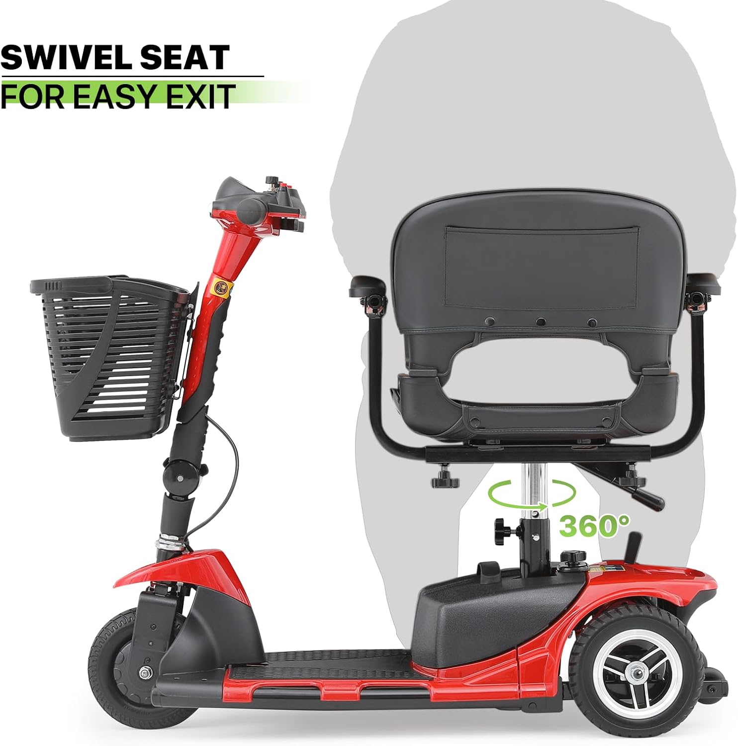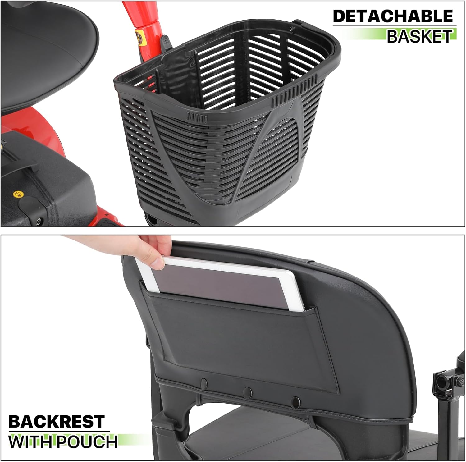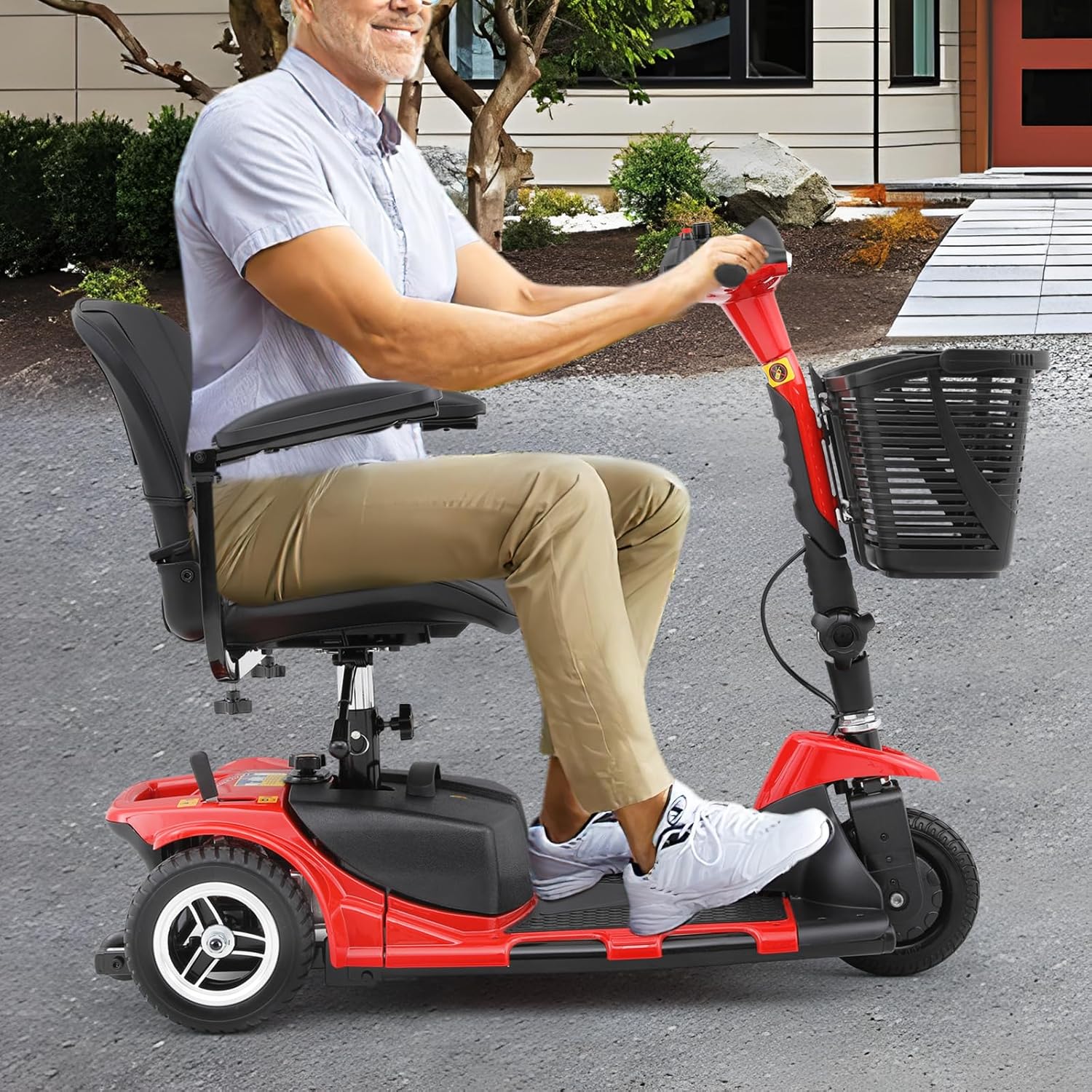 Athena Collection 3 Wheel Mobility Scooter Electric Wheelchair Scooter with Seat for Adults Seniors, Foldable Power Motorized Scooter Long Range Battery with Charger Headlights Basket, Red