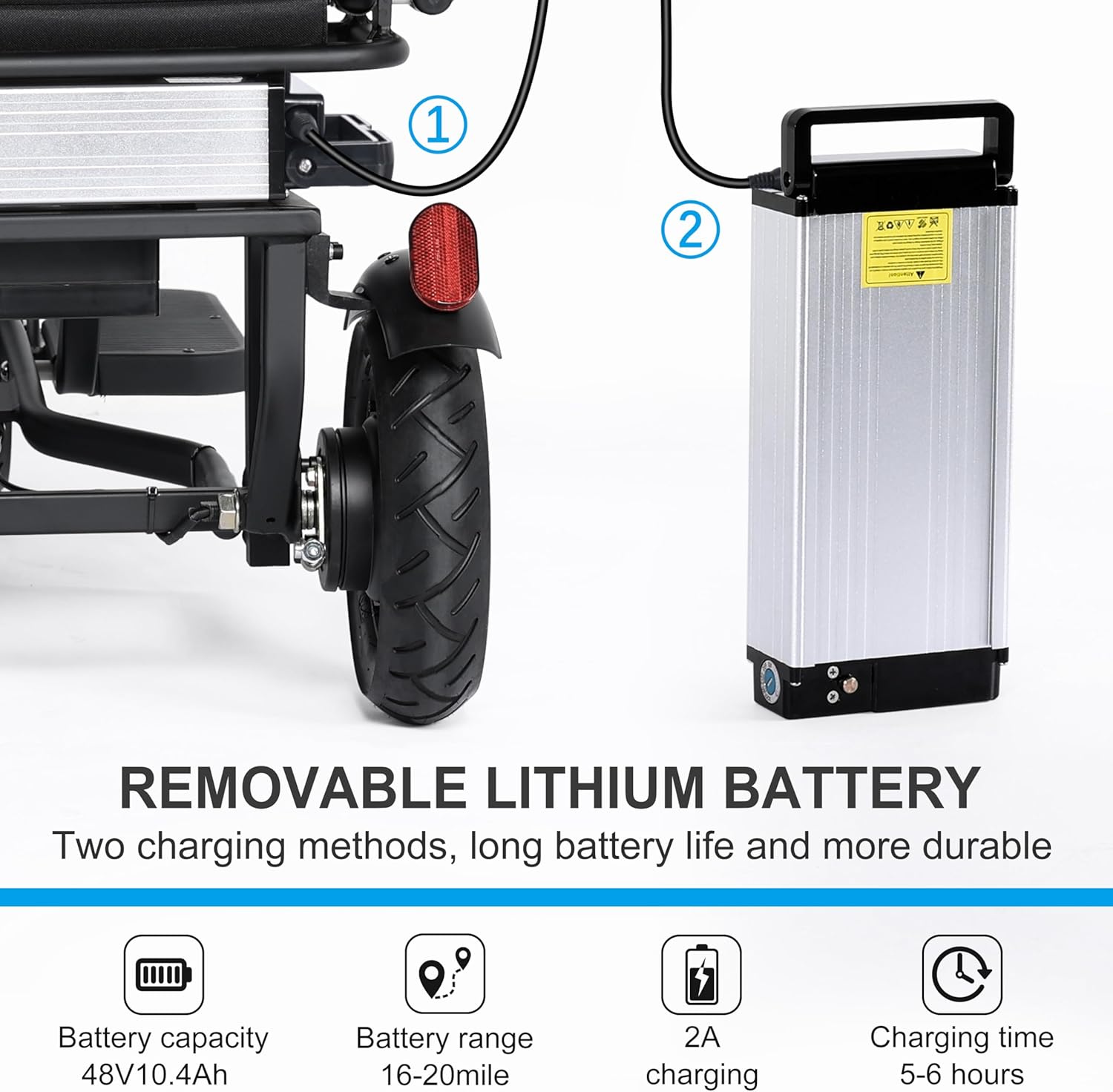 Folding Mobility Electric Trike 60V 800W,Mobility Scooters for Adults,3 Wheel Lightweight Portable Power Travel Scooters,36 Miles Long Range Electric Powered Wheelchair Device (Black)