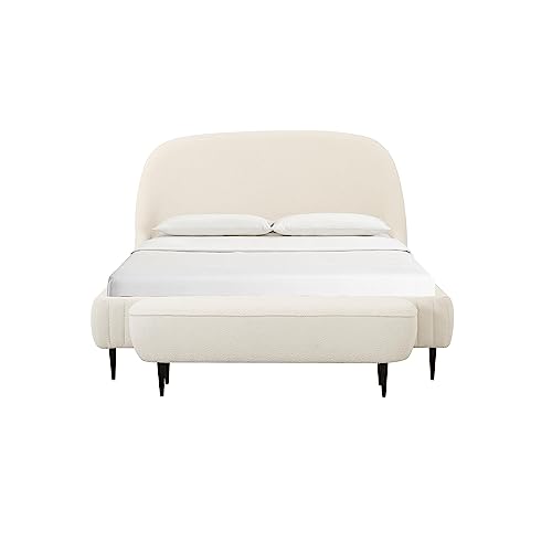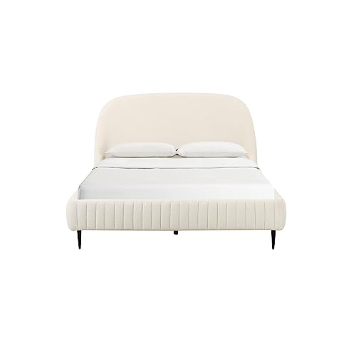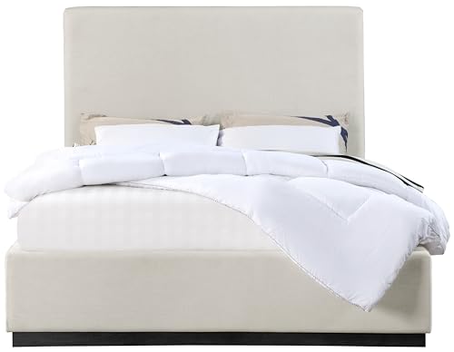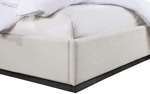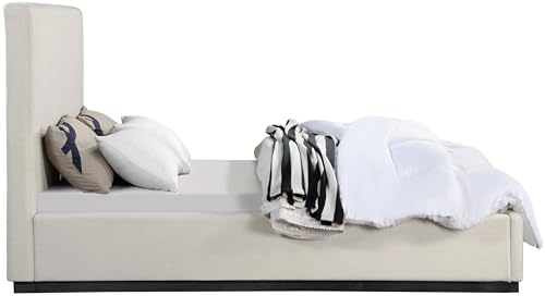 Meridian Furniture AlfieCream-K Alfie Collection Modern | Contemporary King Bed with Rich Cream Linen Textured Fabric, Natural Finish Solid Wood Base, 81.5" W x 87.5" D x 52" H, Cream, King