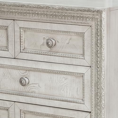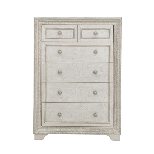Traditional Wooden 6 Pcs Bedroom Furiture Set Including King Upholstered Bed, Dresser, Mirror, Chest & 2xNightstand in Cream Finish