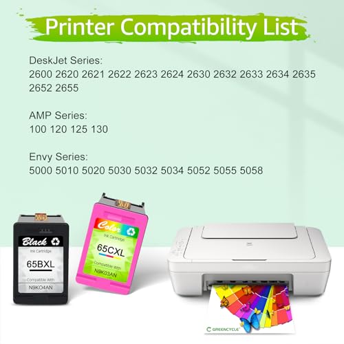 greencycle Remanufactured Ink Cartridge Replacement for HP 65XL 65 XL N9K04AN Compatible for Envy 5055 5058 5052 DeskJet 3755 2622 2655 2624 2652 3720 3722 3723 3730 3732 3752 Printer (Black, 2 Pack)