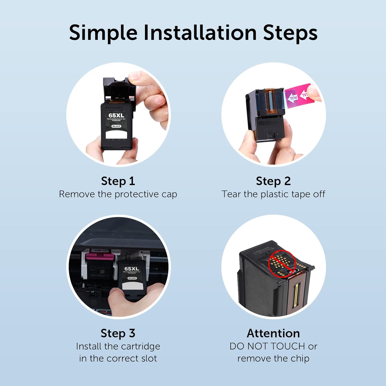 Remanufactured Ink Cartridge Replacement for HP 65XL 65 Ink (Black and color combo, 2-Pack) HP65 XL HP65XL for 5000 5055 3755 3700 3772 3722 2600 2622 3752 2652 2640 5052 5010 5014 Printer