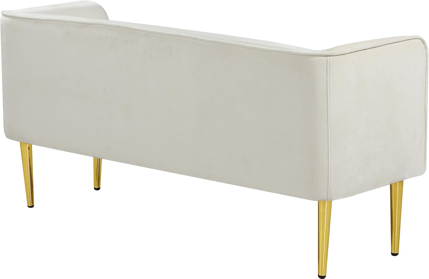 Meridian Furniture Audrey Collection Modern | Contemporary Velvet Upholstered Bench with Sturdy Metal Legs in Gold Finish, 52" W x 19" D x 24" H, Cream