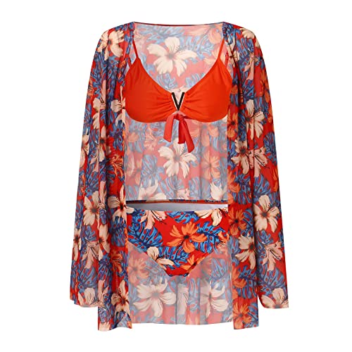 beach outfits for women 2023 3 Piece Bikini Set Cover Up Swimsuit for Women Long Sleeve Push Swimsuit Dress